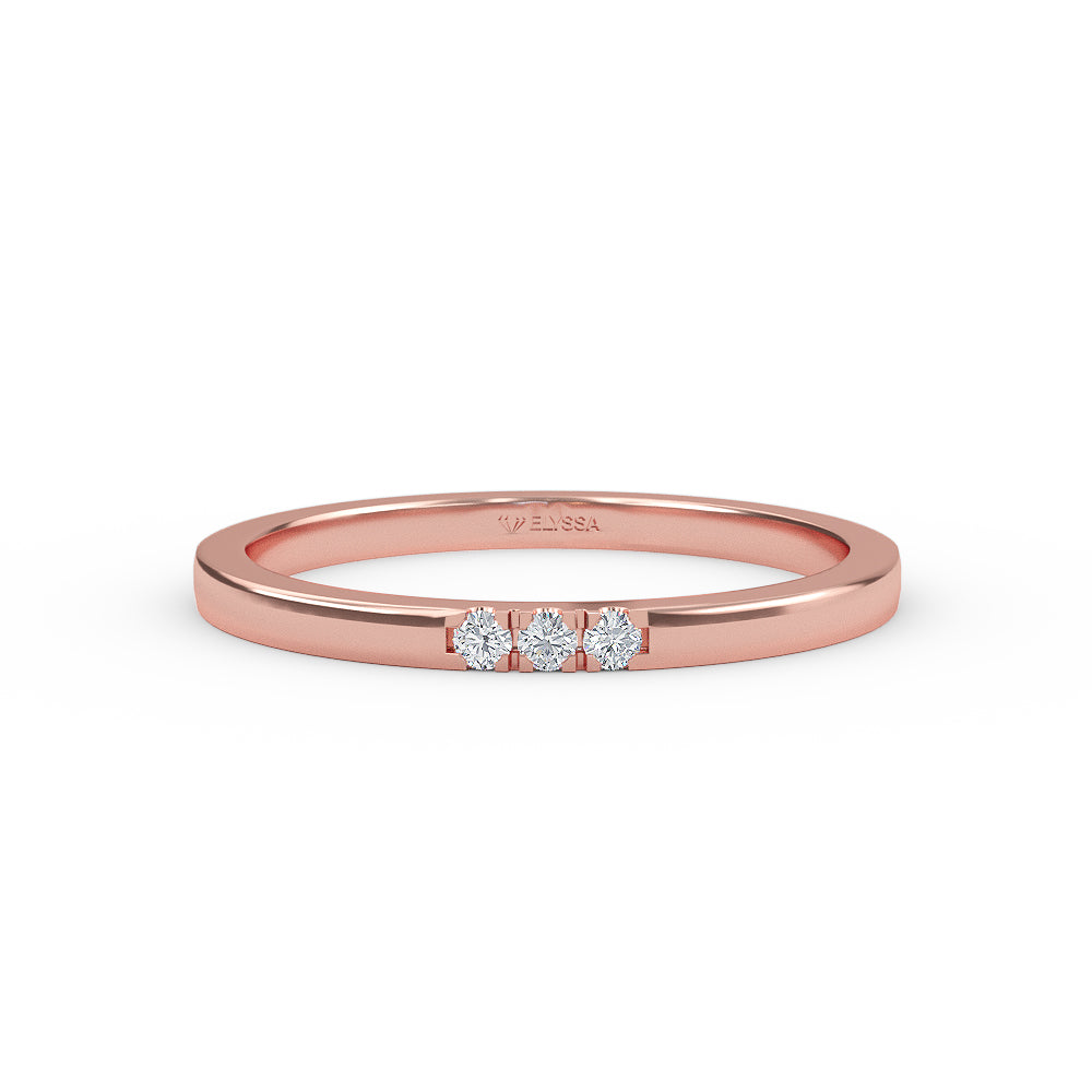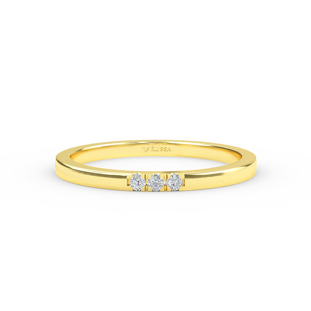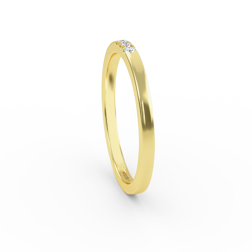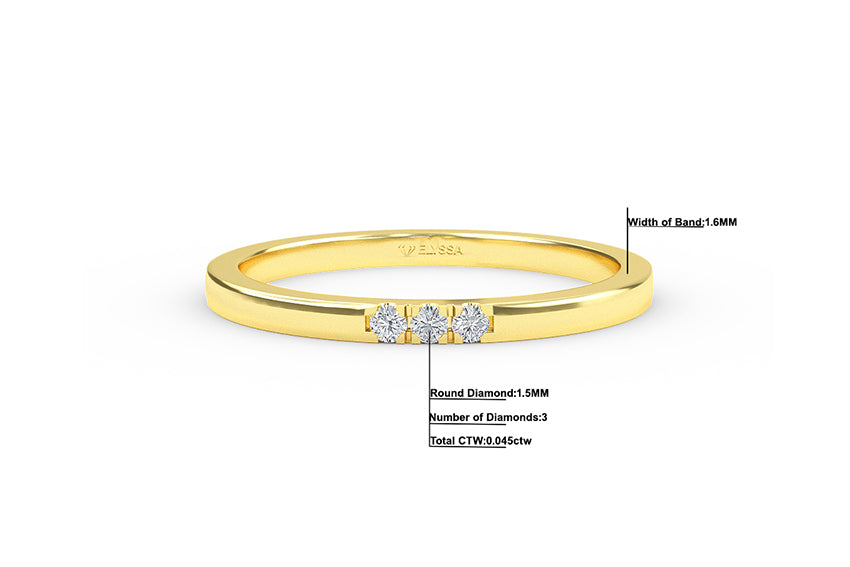 14K Gold 1.6MM 3 Stone Diamond Wedding Band