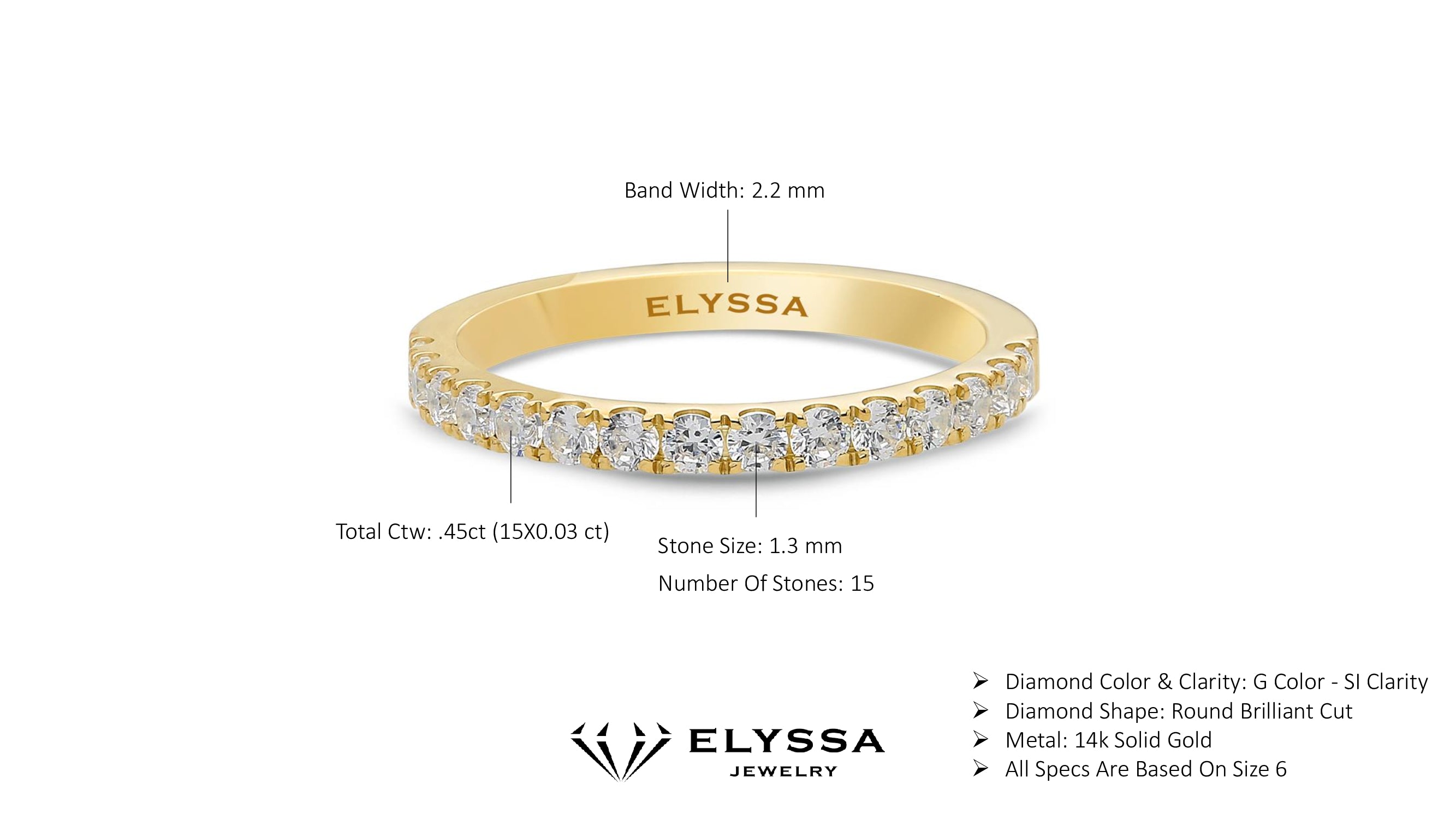| 14K Gold 2.2mm Half Way Diamond Wedding Band Stone(s) Info | |
