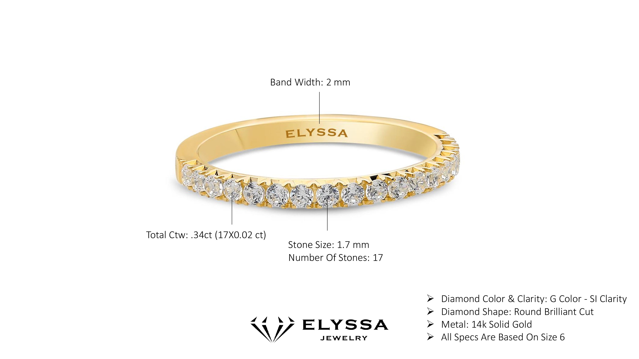 | 14K Gold 2mm French Cut Half Way Diamond Wedding Band Stone(s) Info | |