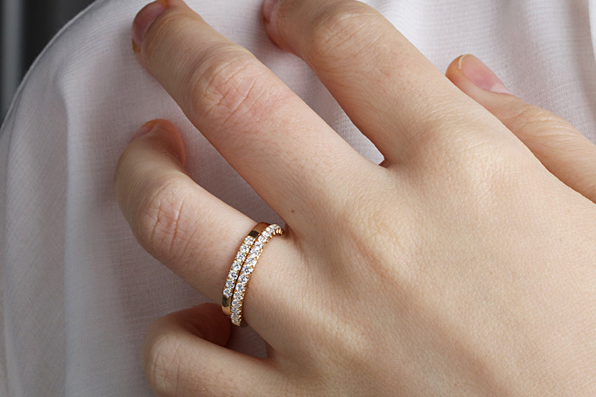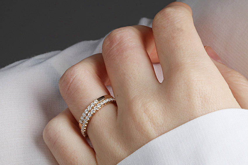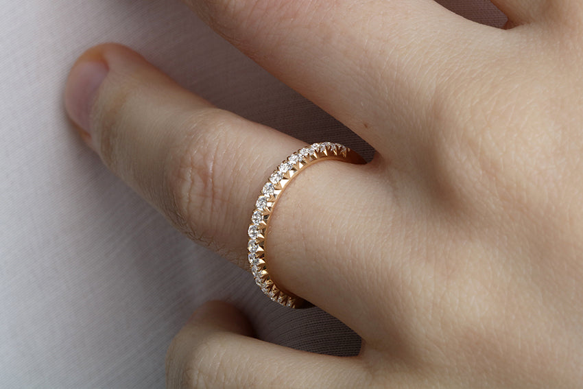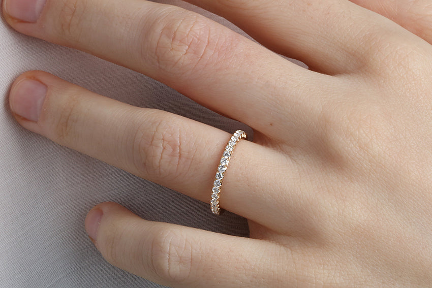 14K Gold 2mm French Cut Half Way Diamond Wedding Band