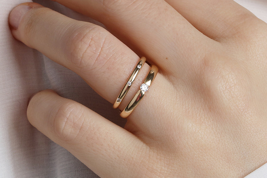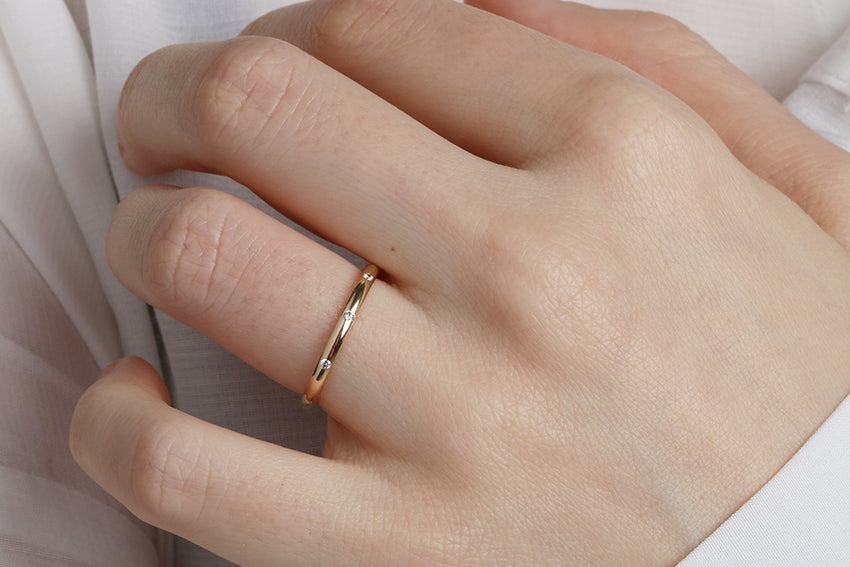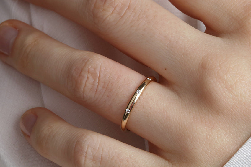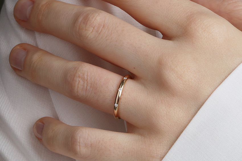 14K Gold 2mm Three Stone Burnish Set Diamond Wedding Band