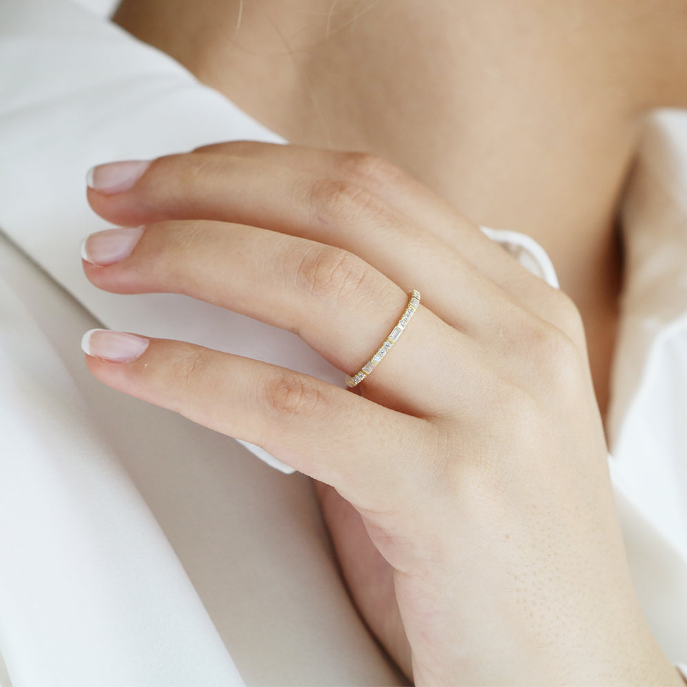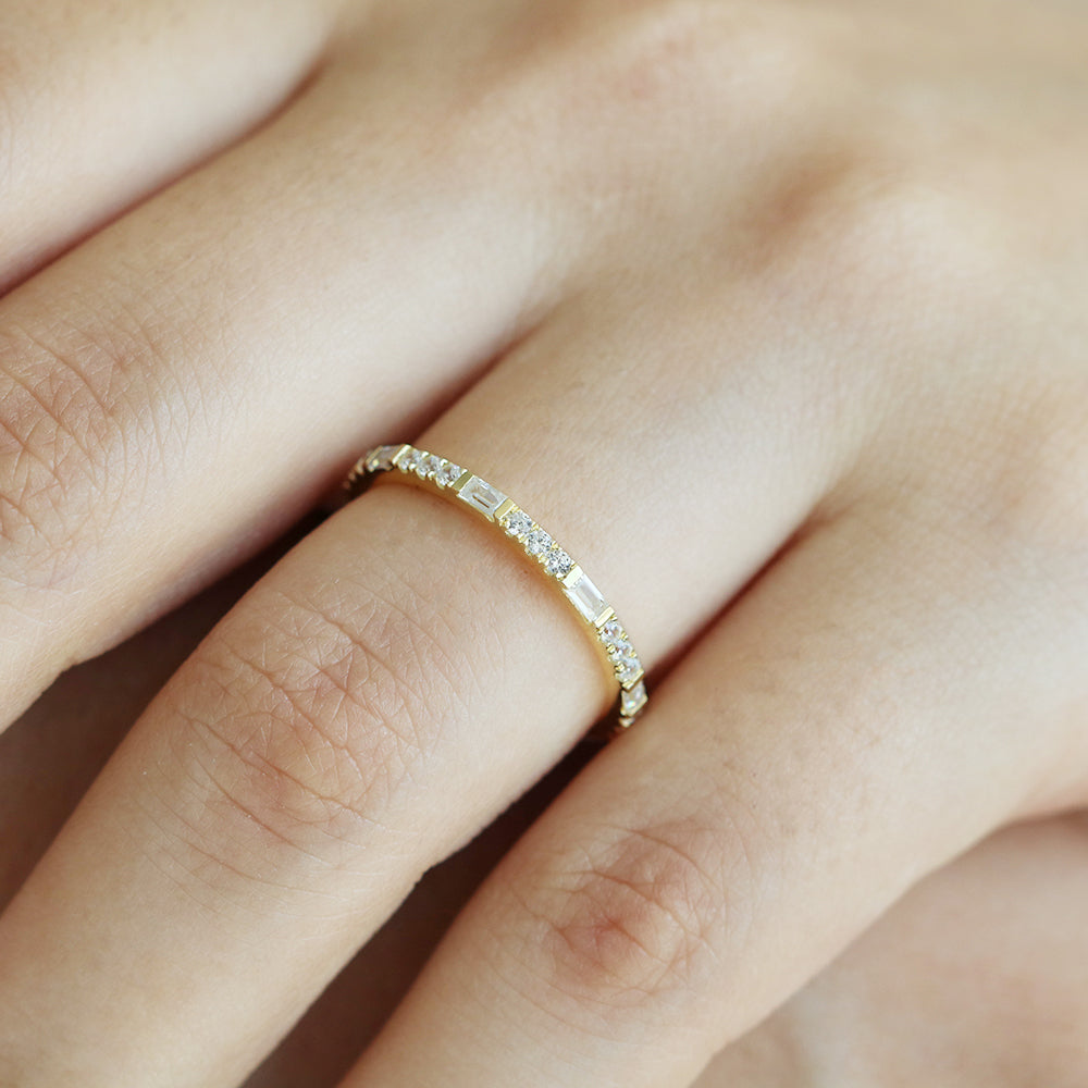 14k Gold Baguette and Round Diamond Eternity Ring