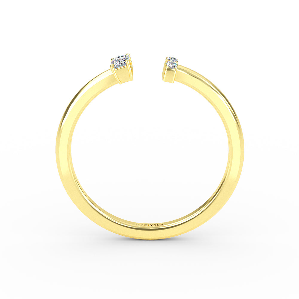 14K Gold Baguette and Round Micro Pave Cuff Ring