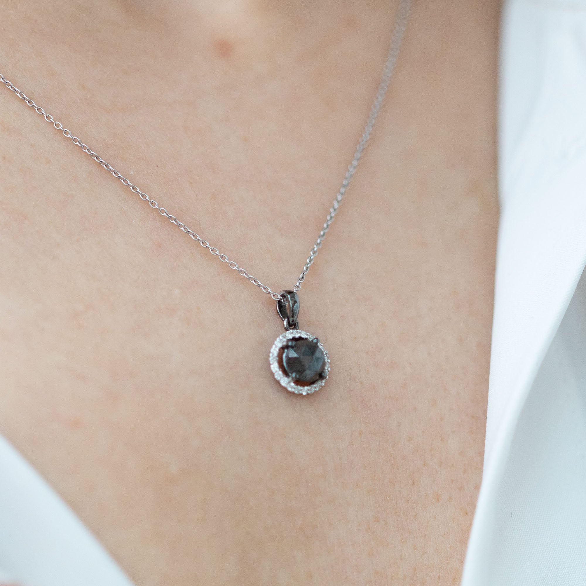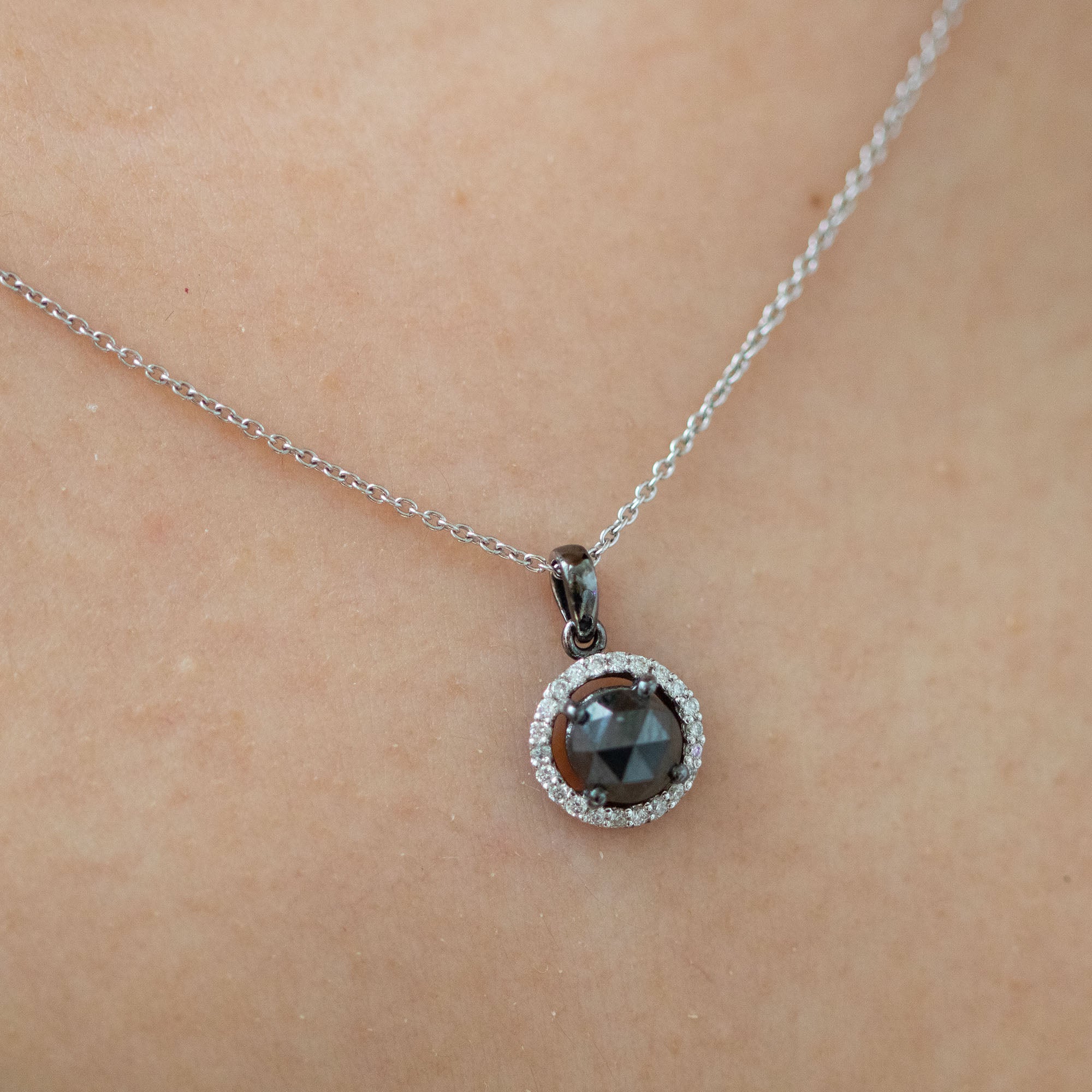 | 14K Gold Black and White Dıamond Halo Necklace Stone(s) Info | |
