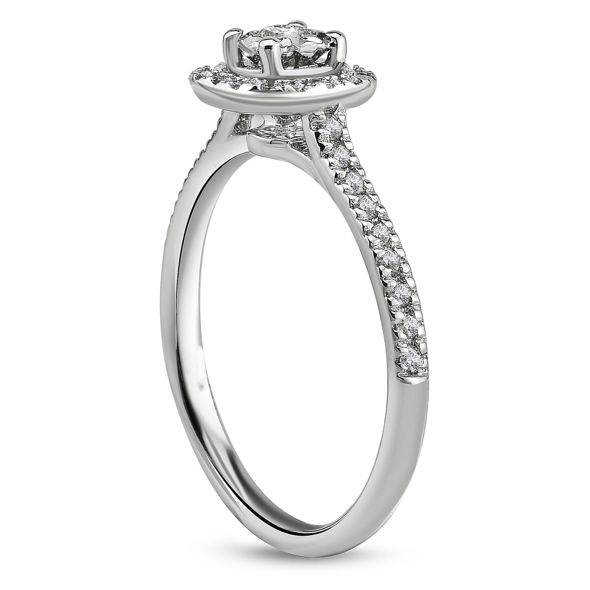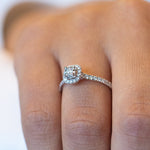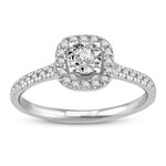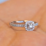 14K Halo Diamond Ring, Micropave Round Diamond Engagement Ring