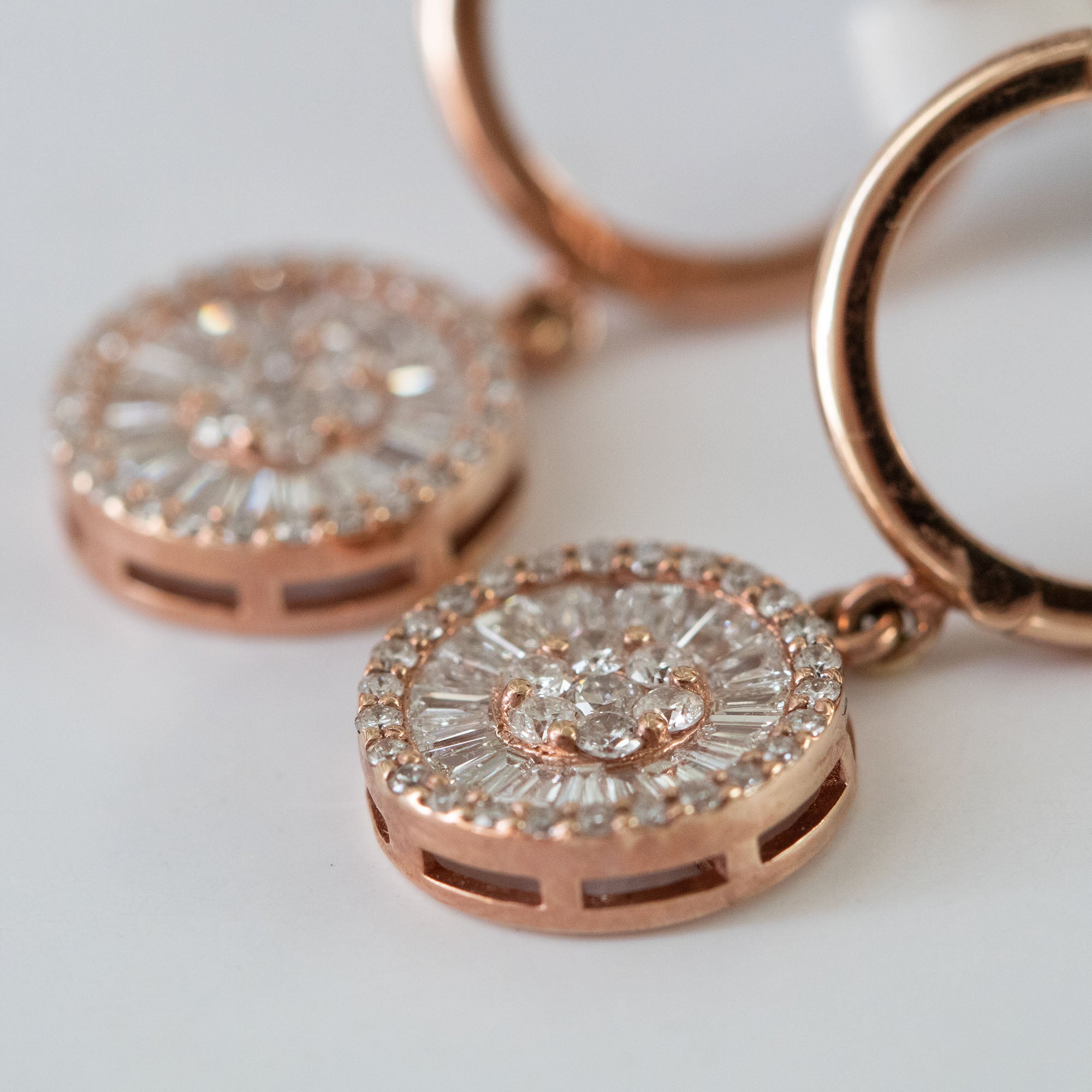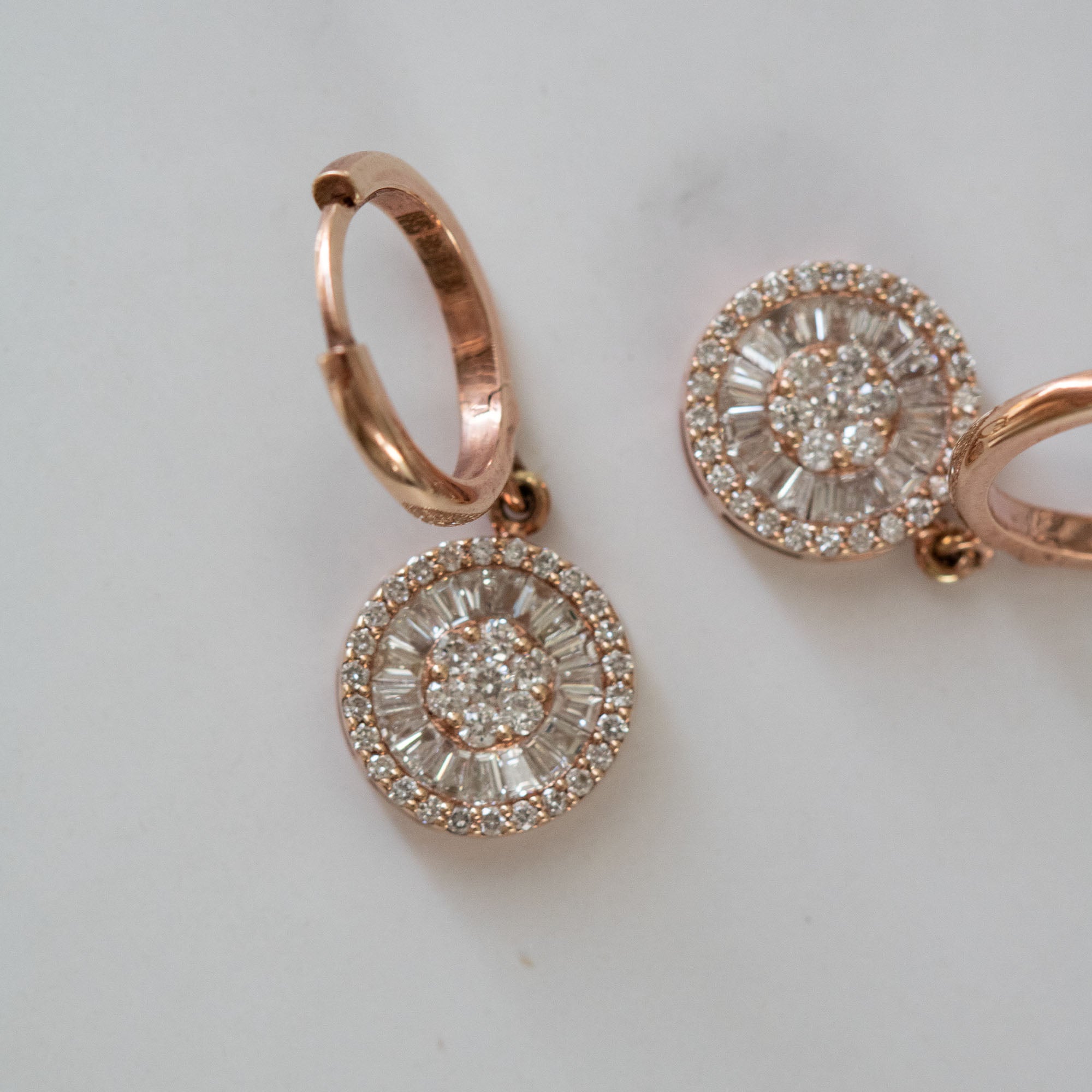 14K Rose Gold Baguette and Round Cut Diamond Earring