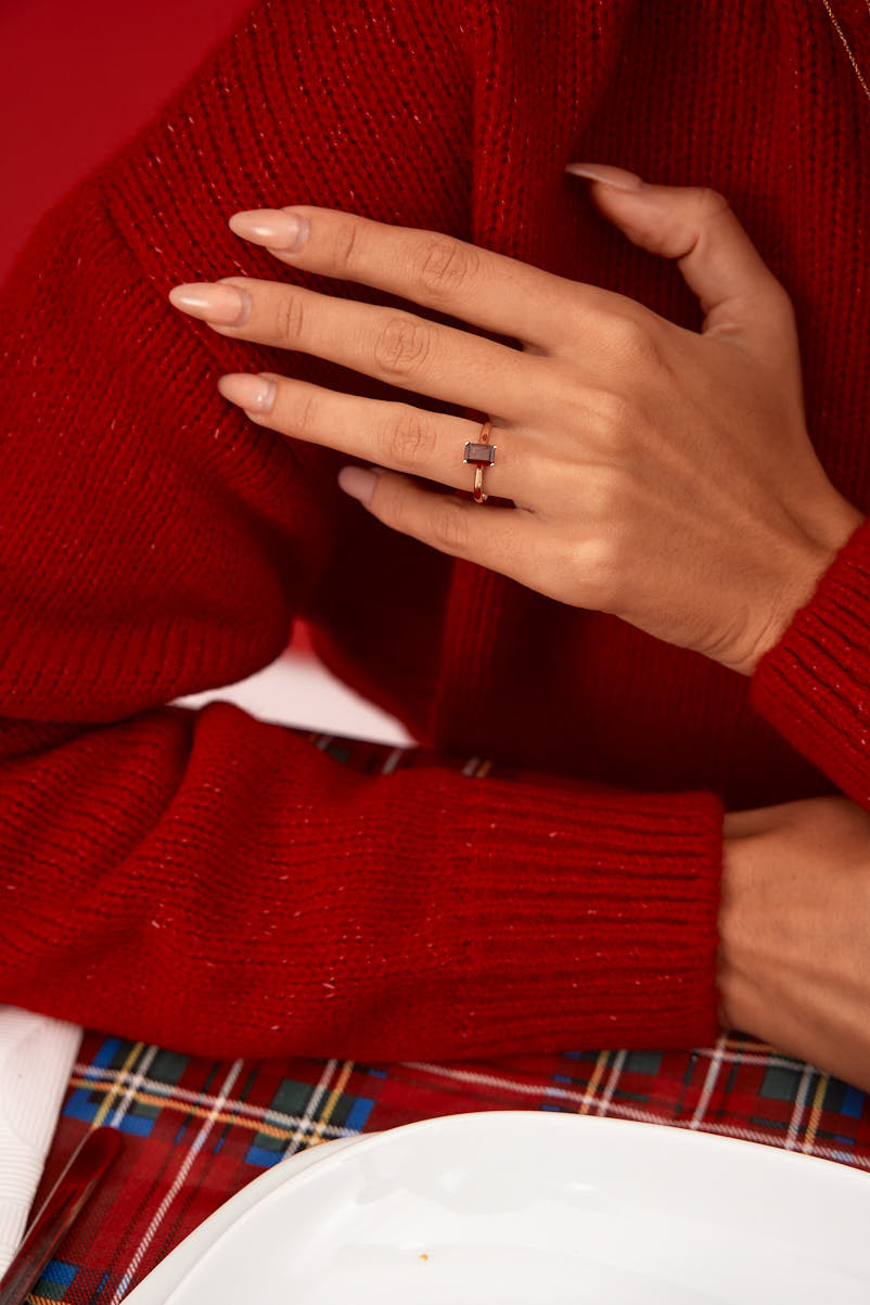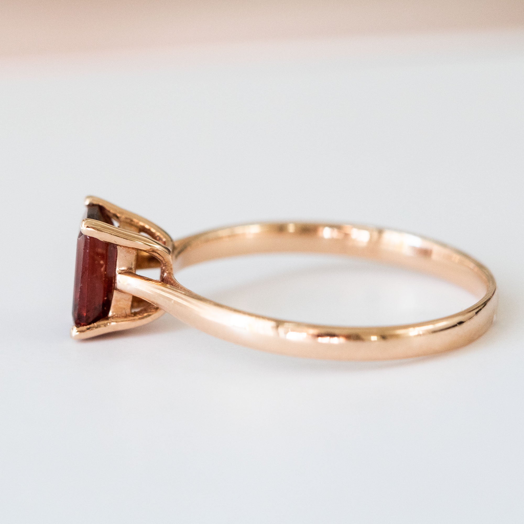 14K Rose Gold Baguette Cut Red Garnet Engagement Ring