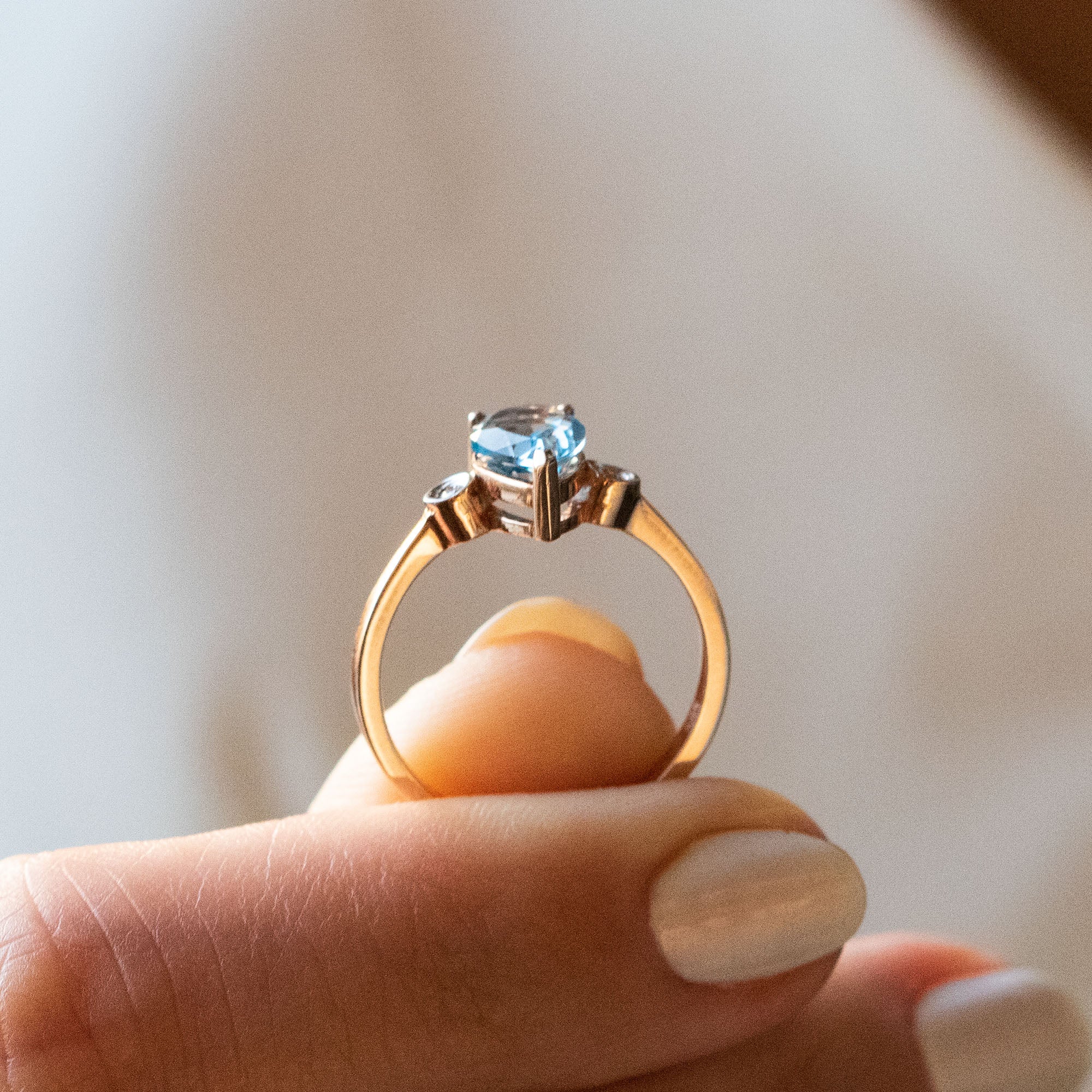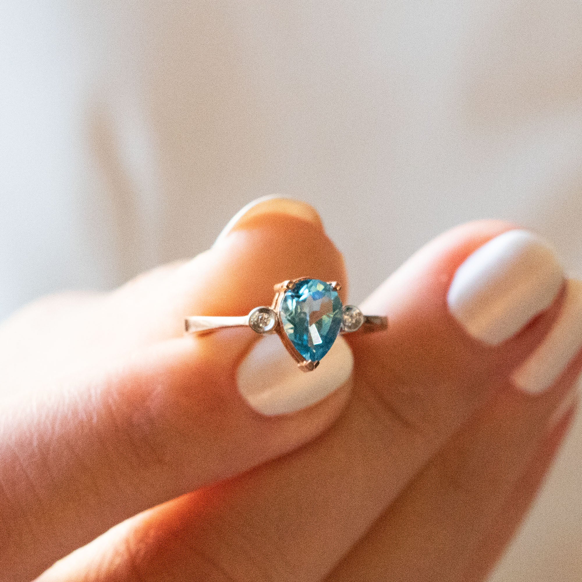 14K Rose Gold Round and Pear Cut Blue Topaz Diamond Engagement Ring