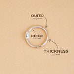 Determine your size by measuring with either a string you've wrapped around your finger or by using a well-fitting ring as a reference. Afterward, consult the ring size chart provided above to ascertain your size.