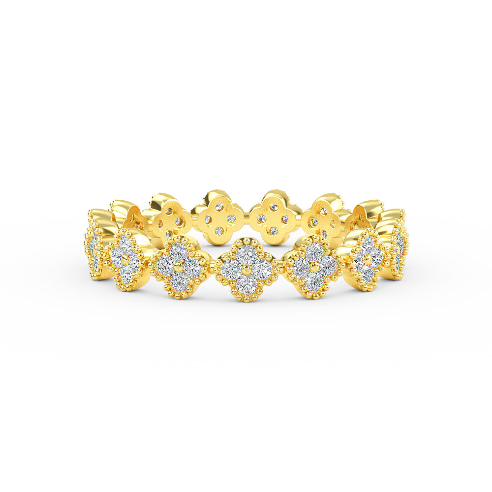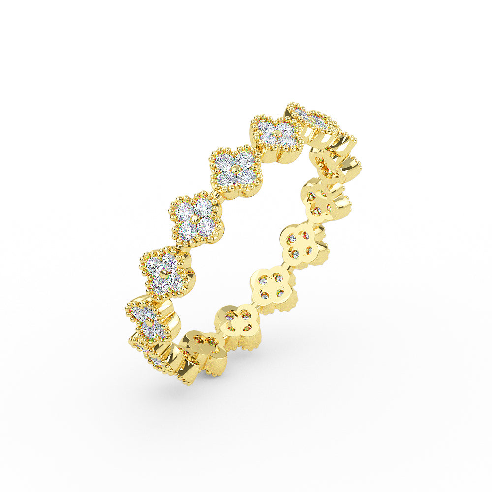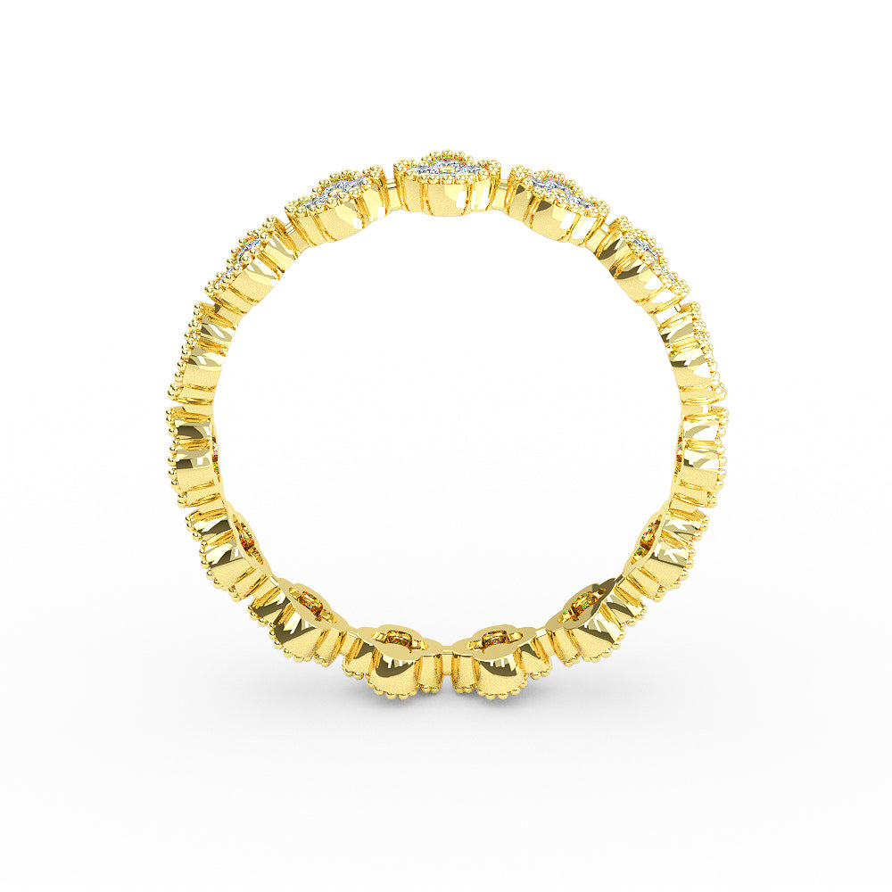 14K Solid Gold Eternity Diamond Clover Wedding Band
