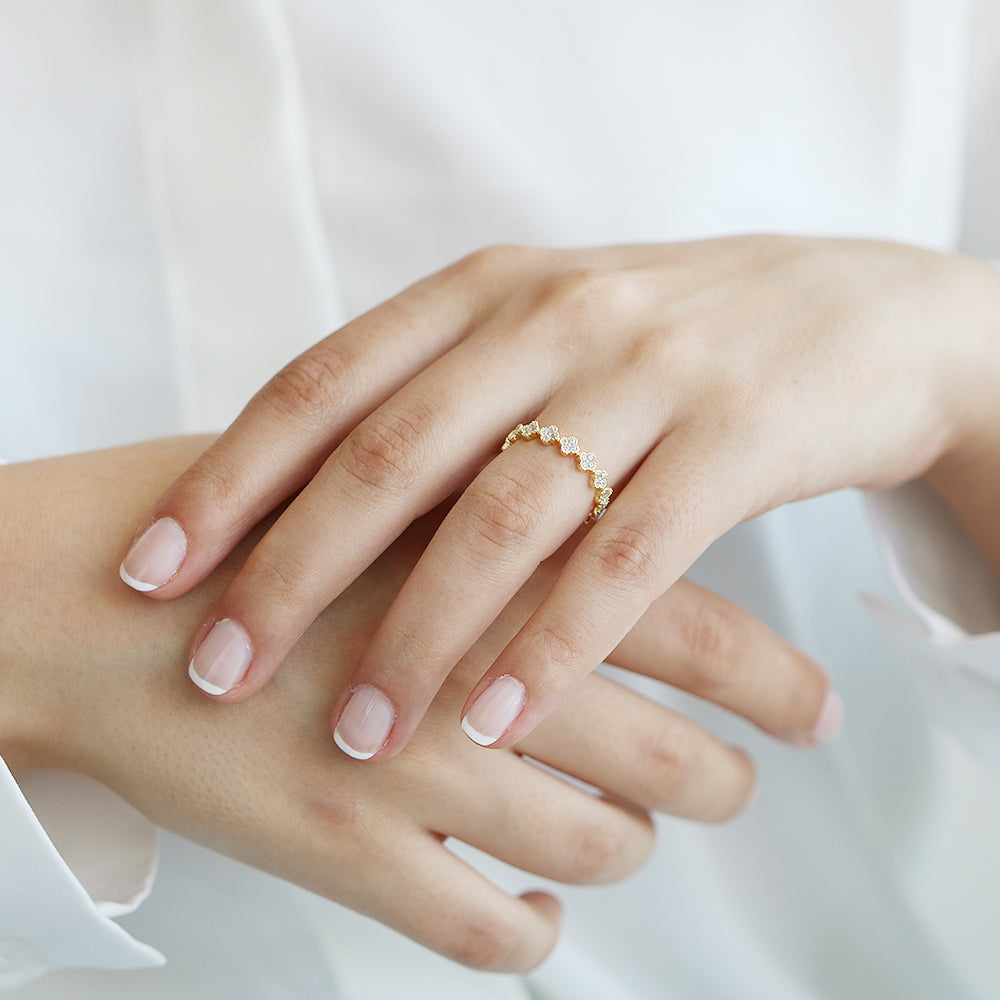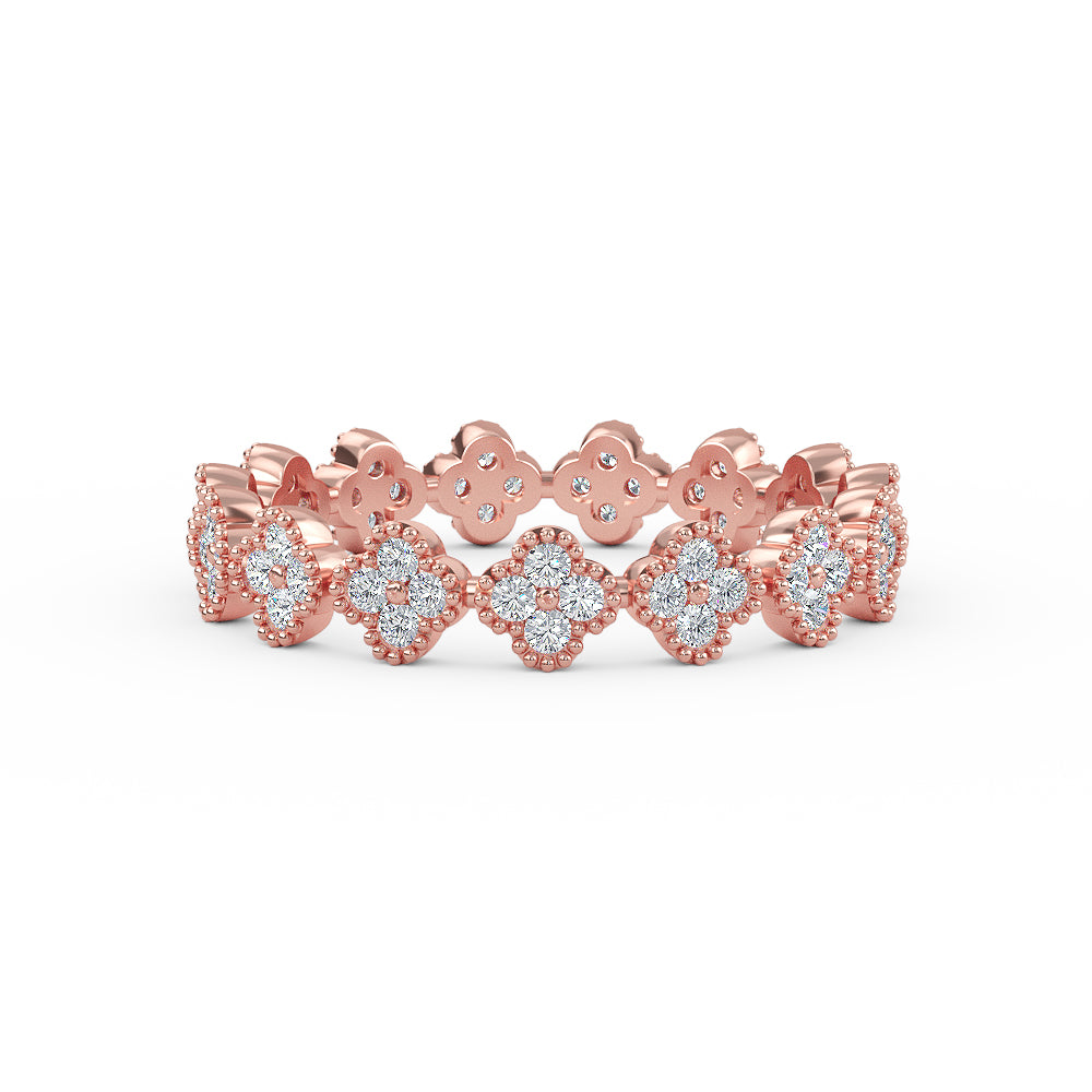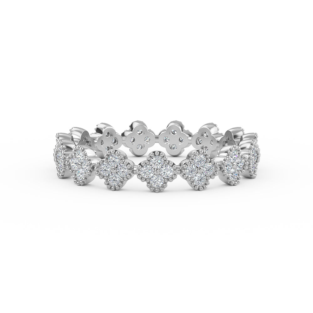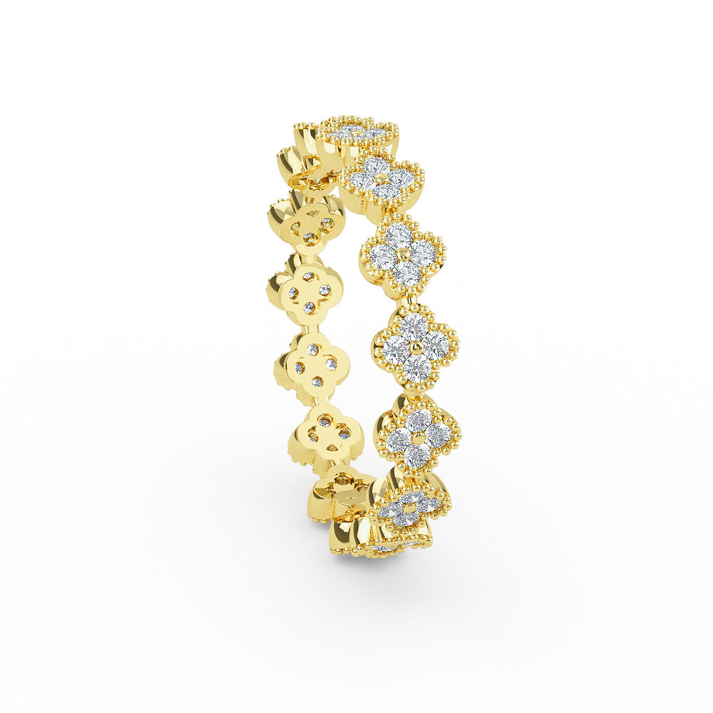 14K Solid Gold Eternity Diamond Clover Wedding Band