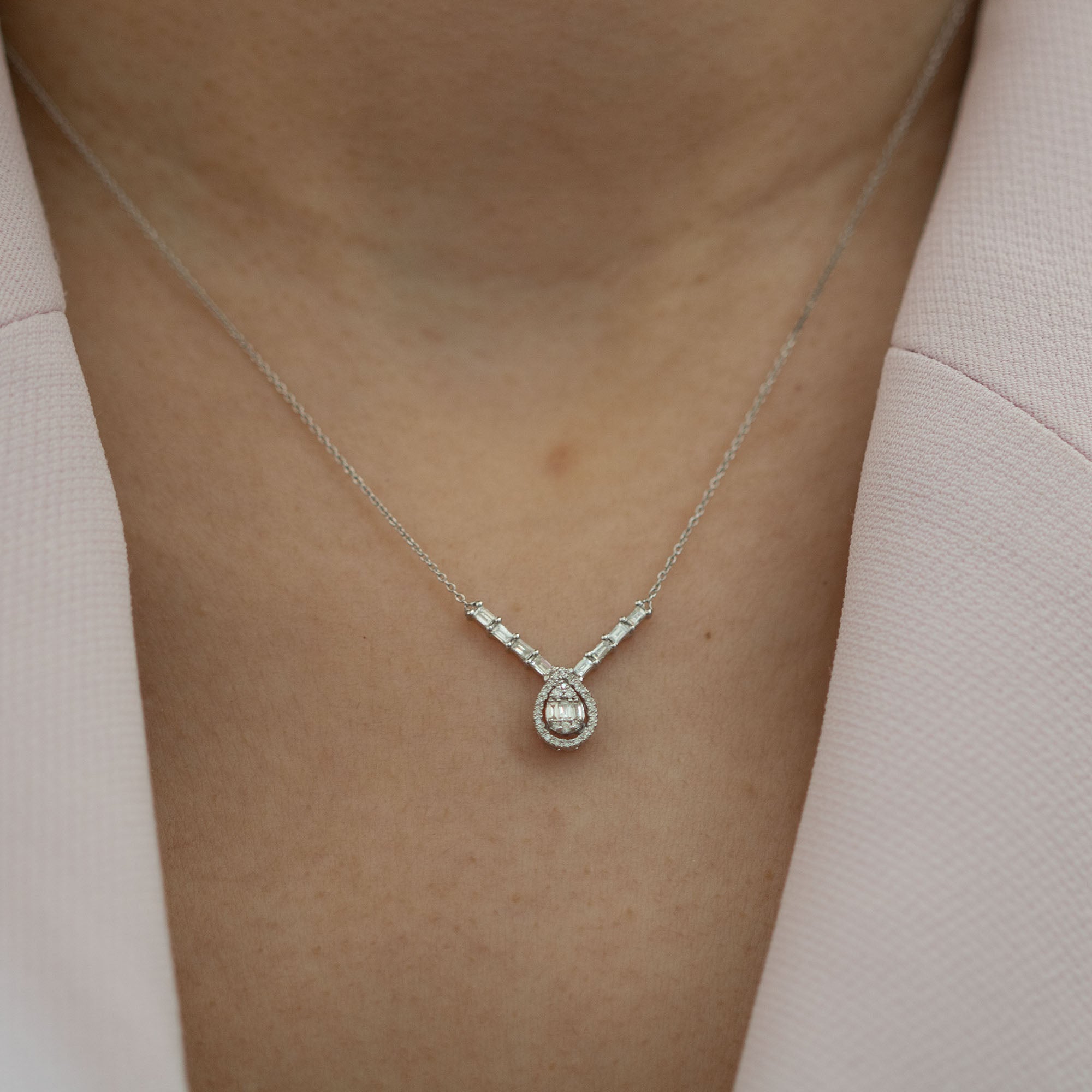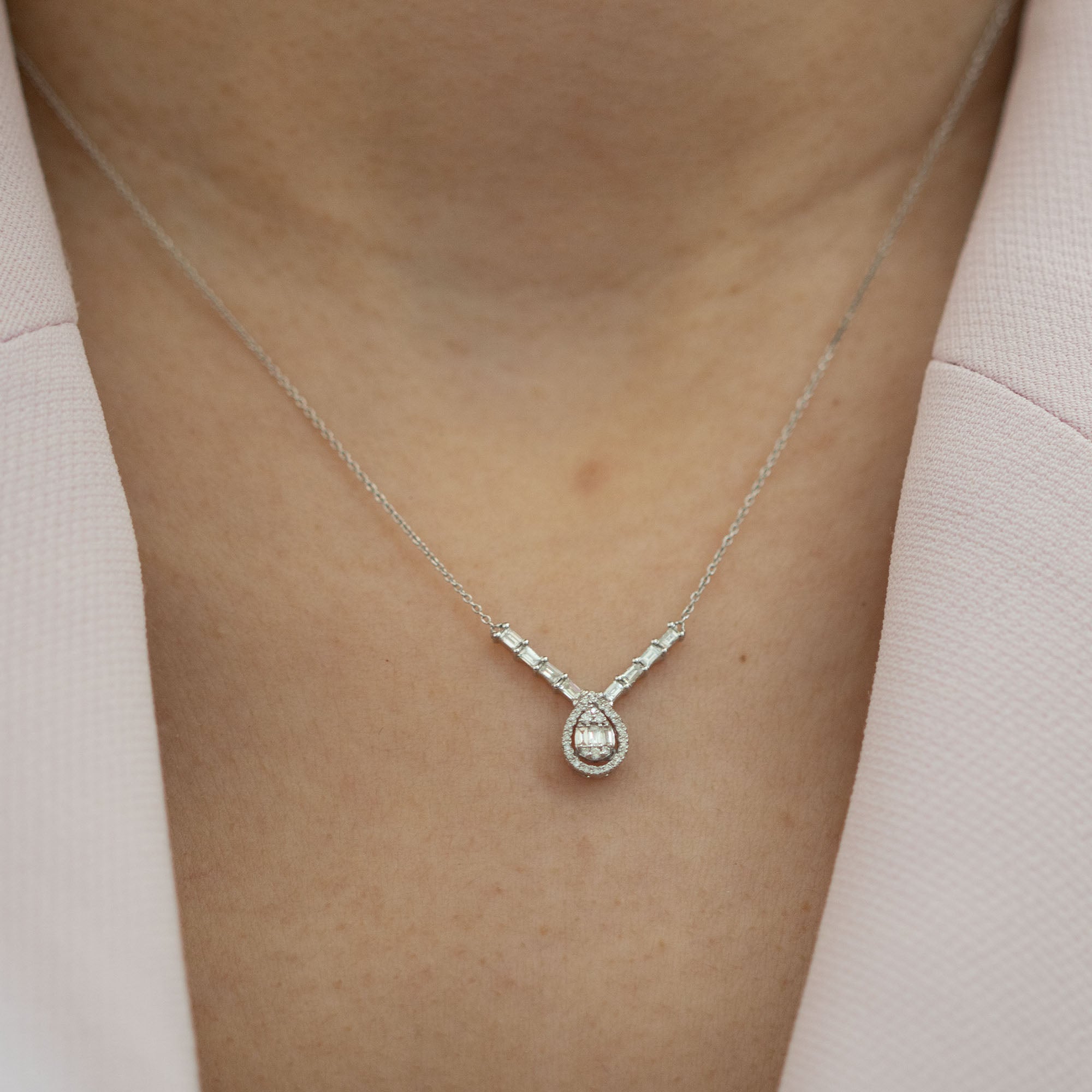 14K White Gold Baguette and Round Cut Diamond Necklace