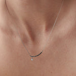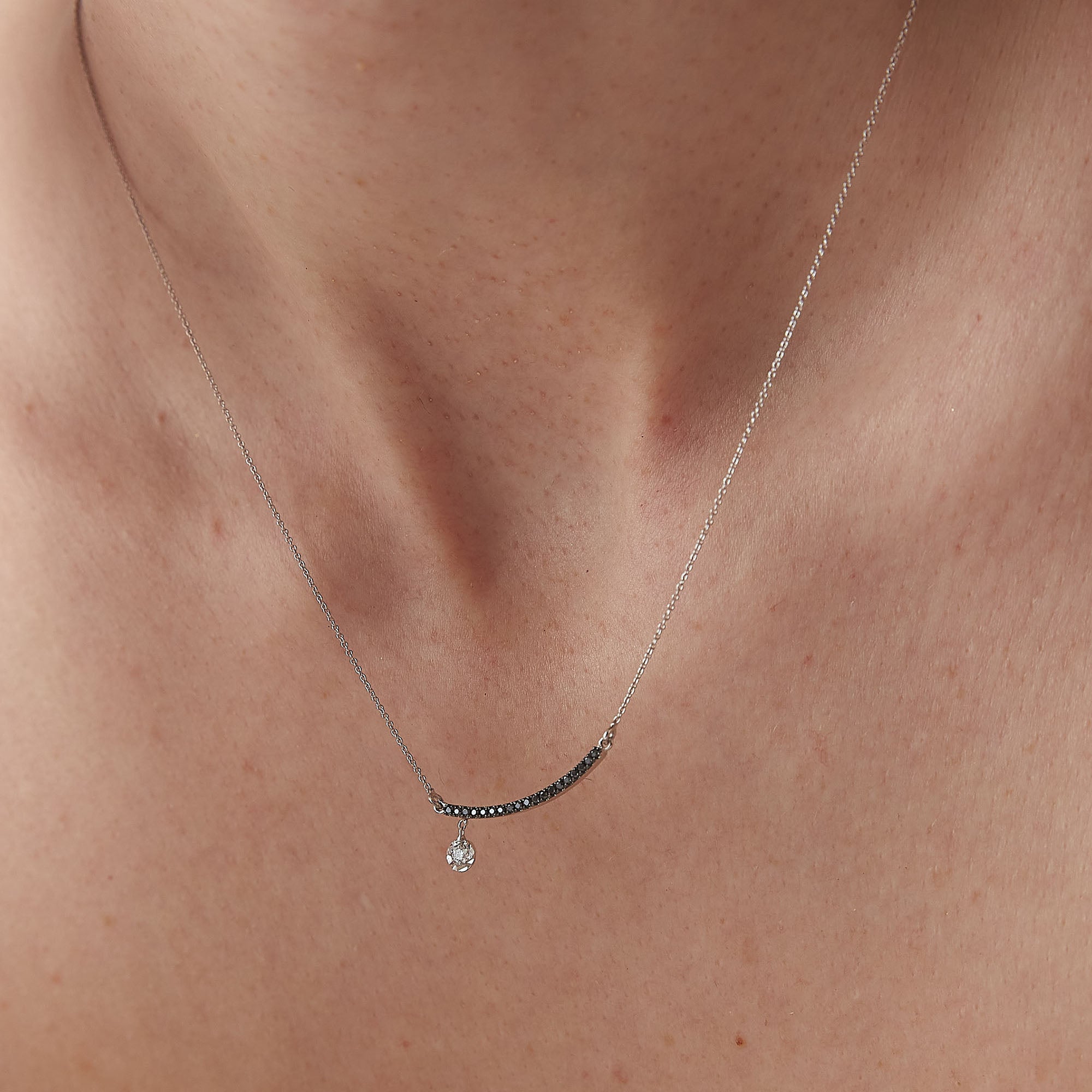14K White Gold Black Stone and White Diamond Stone Curved Necklace