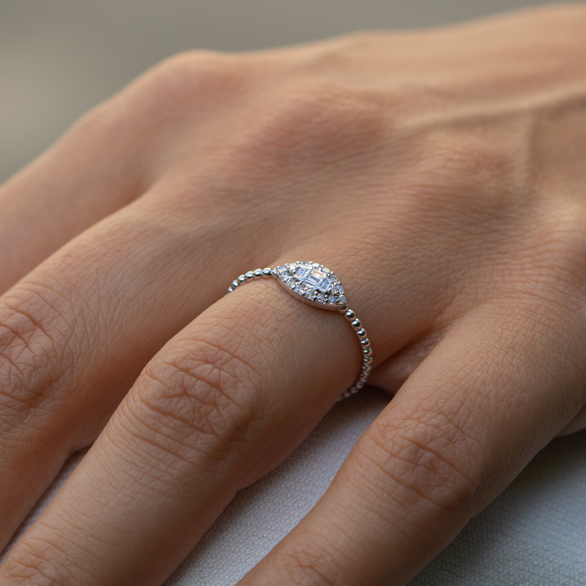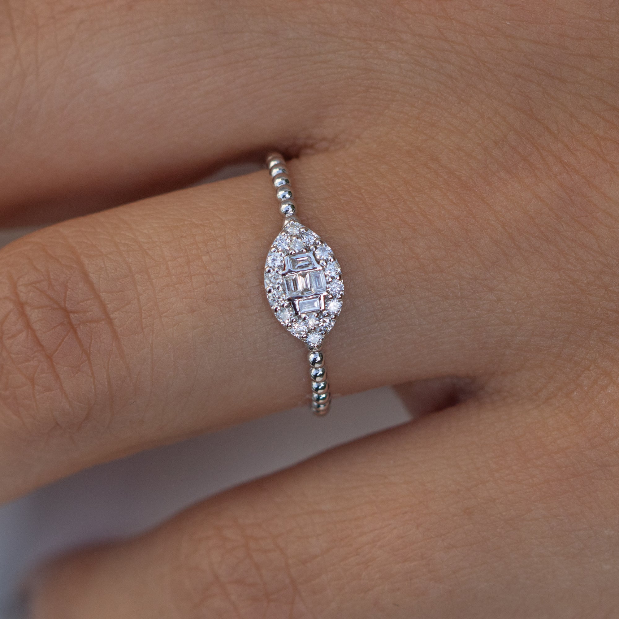 14K White Gold Diamond Evil Eye Ring