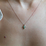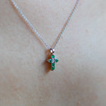 14K White Gold Emerald and Round Diamond Cross Necklace