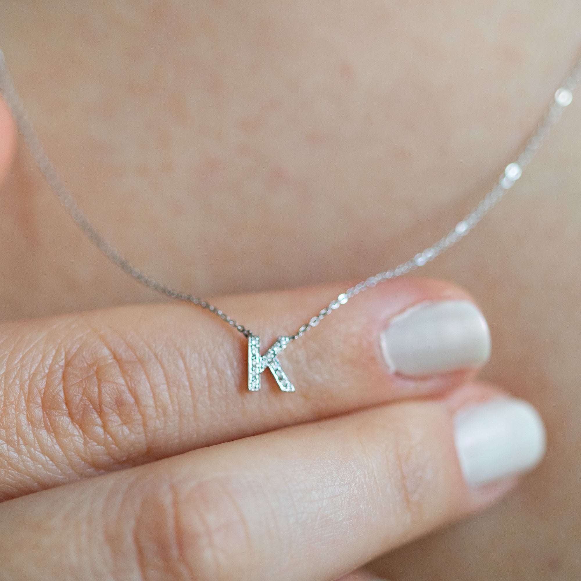 14K White Gold İnitial Personalized Diamond Necklace Stone(s) Info