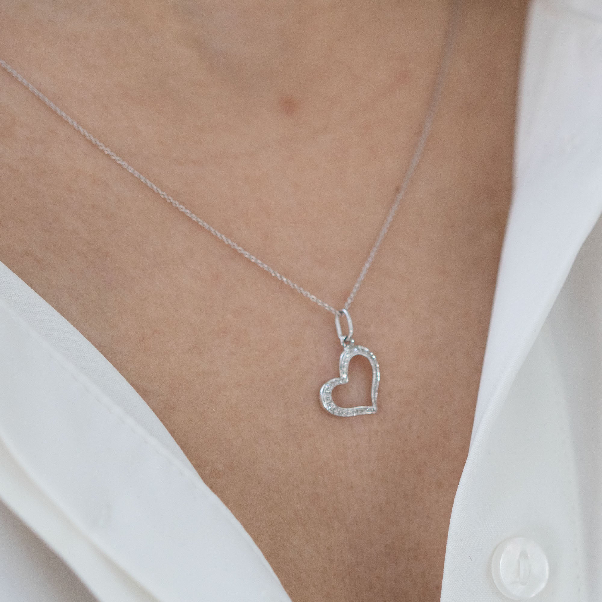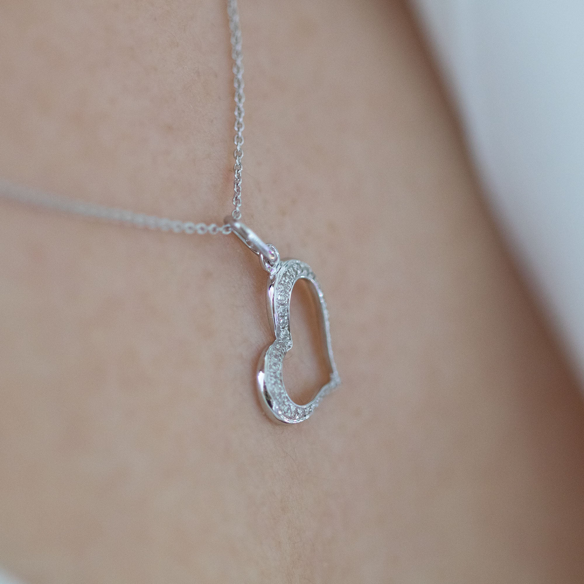 | 14K White Gold Open Heart Diamond Necklace Stone(s) Info | |