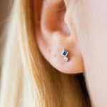 14K White Gold Princess Cut Sapphire and Diamond Earring