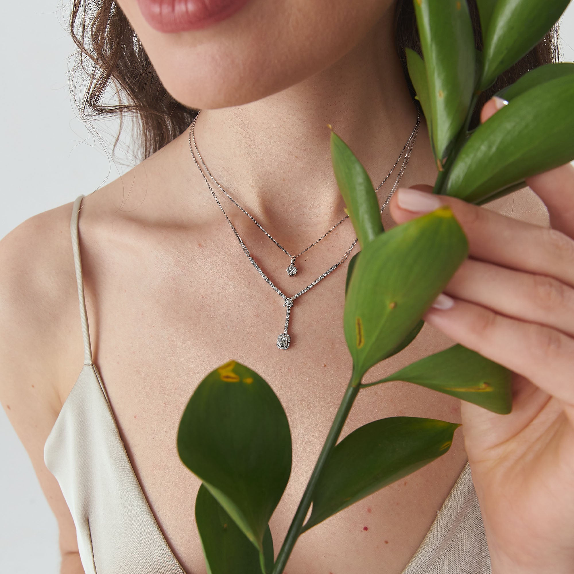 | 14K White Gold Round Cut Diamond Stone Necklace Stone(s) Info | |