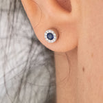 14K White Gold Round Cut Sapphire and Diamond Earring