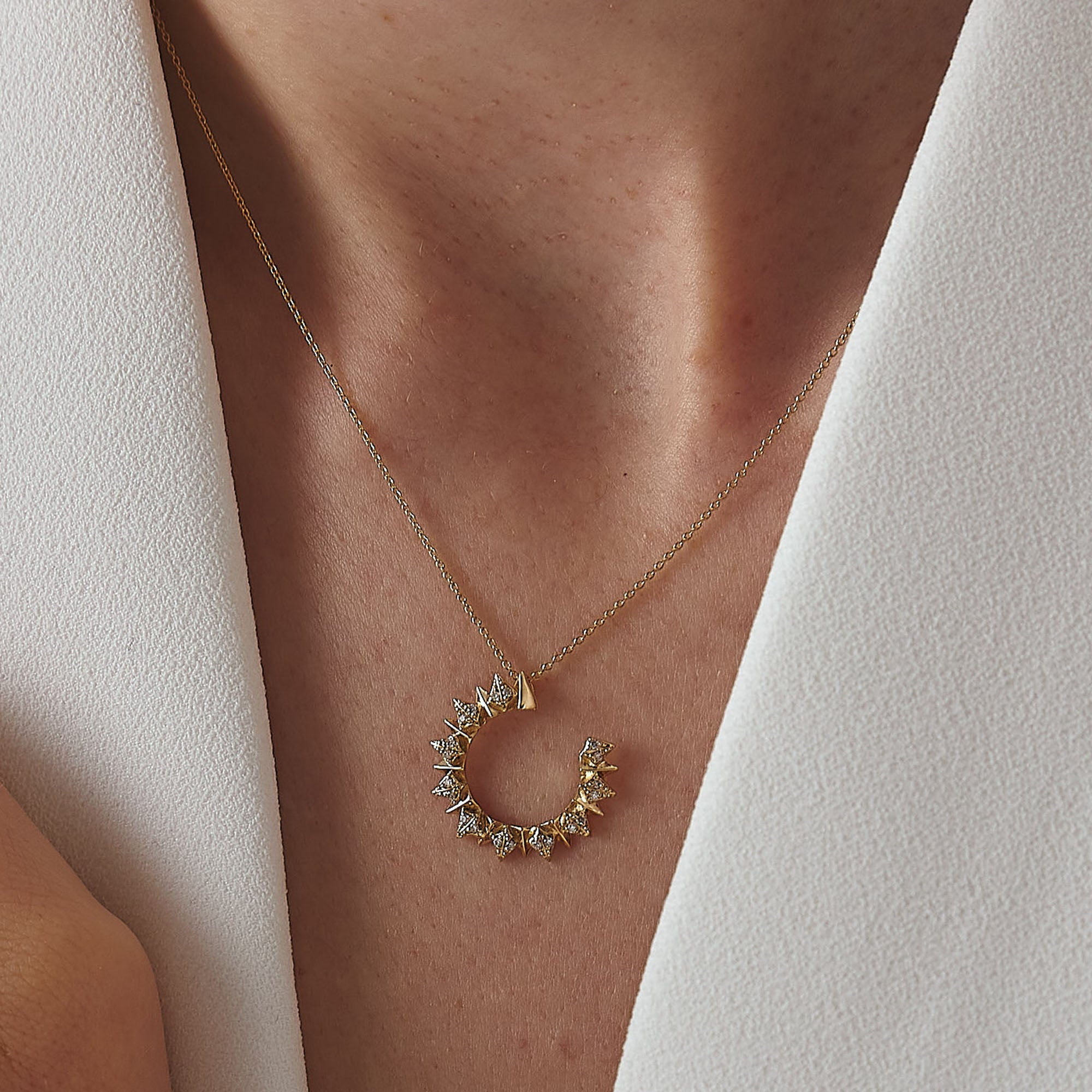 | 14K Yellow Gold Half Circle Diamond Necklace Stone(s) Info | |