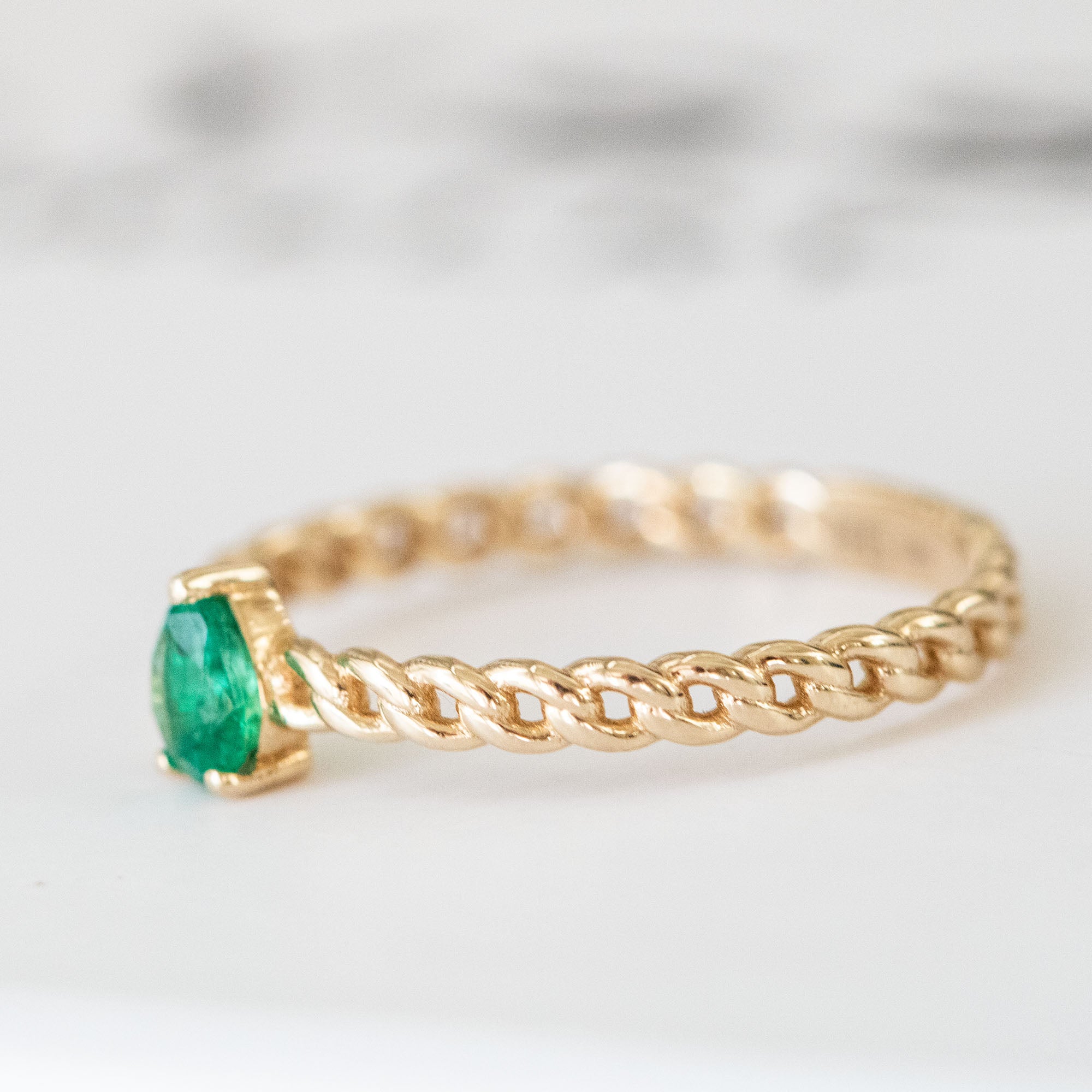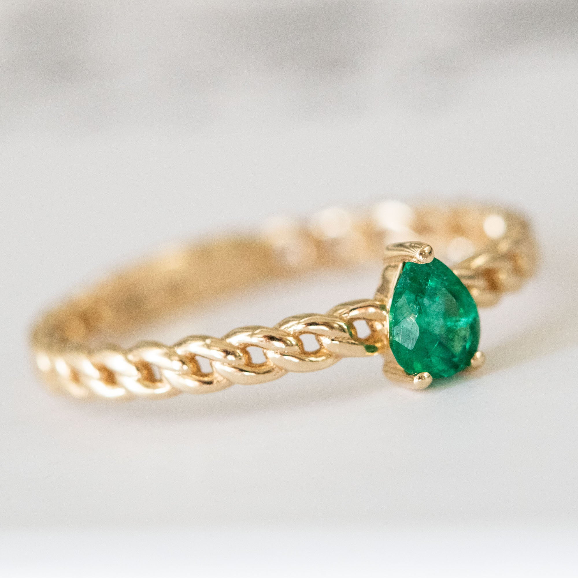 14K Yellow Gold Pear Cut Emerald Engagement Ring