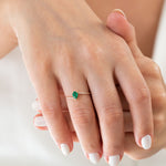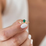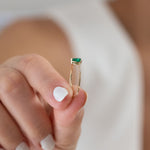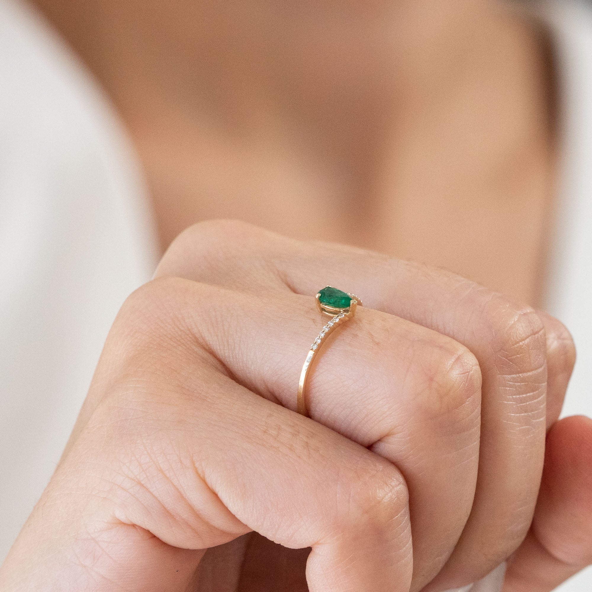 14K Yellow Gold Round and Pear Cut Emerald Diamond Engagement Ring