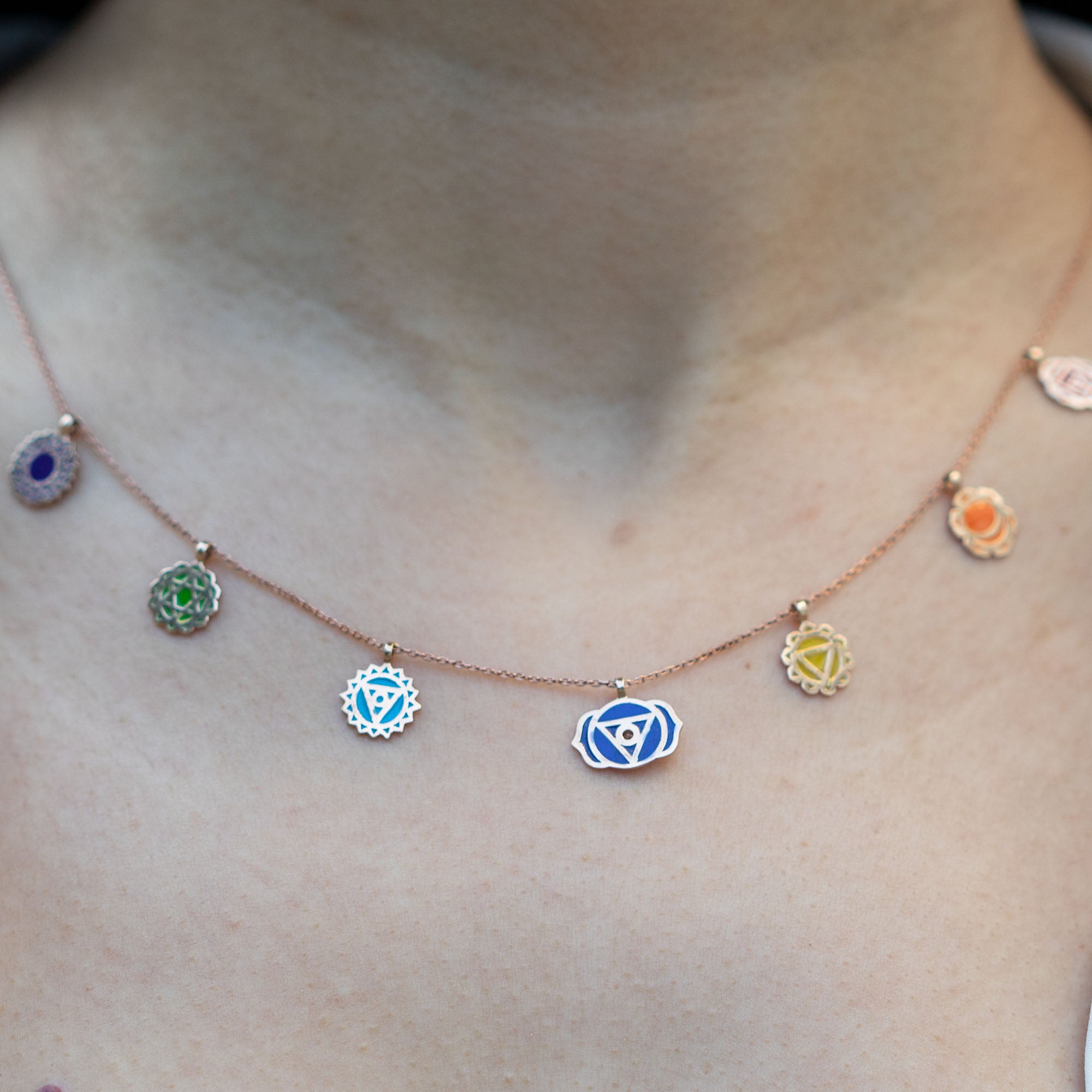 14K Yellow Gold Seven Chackra Necklace