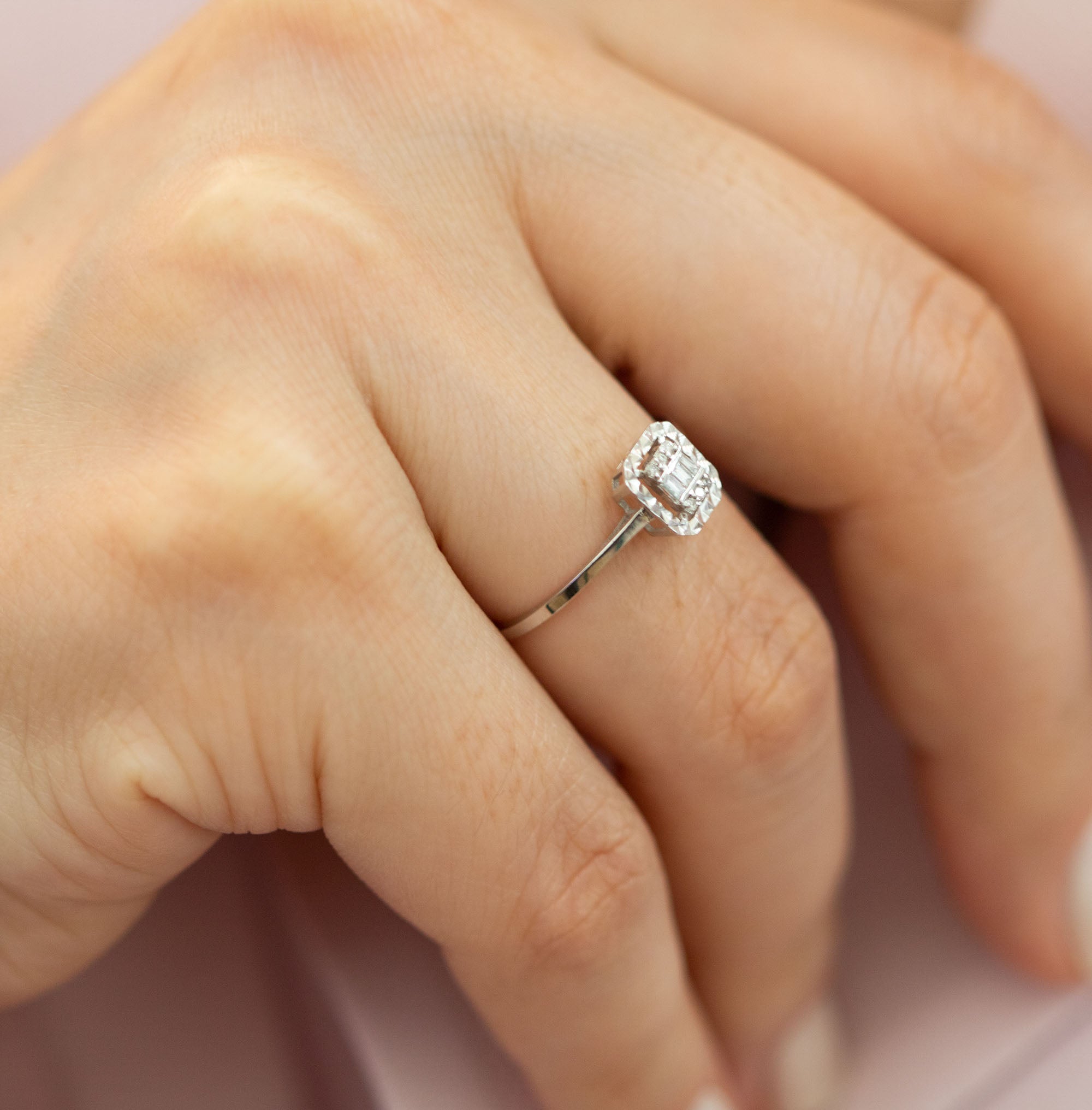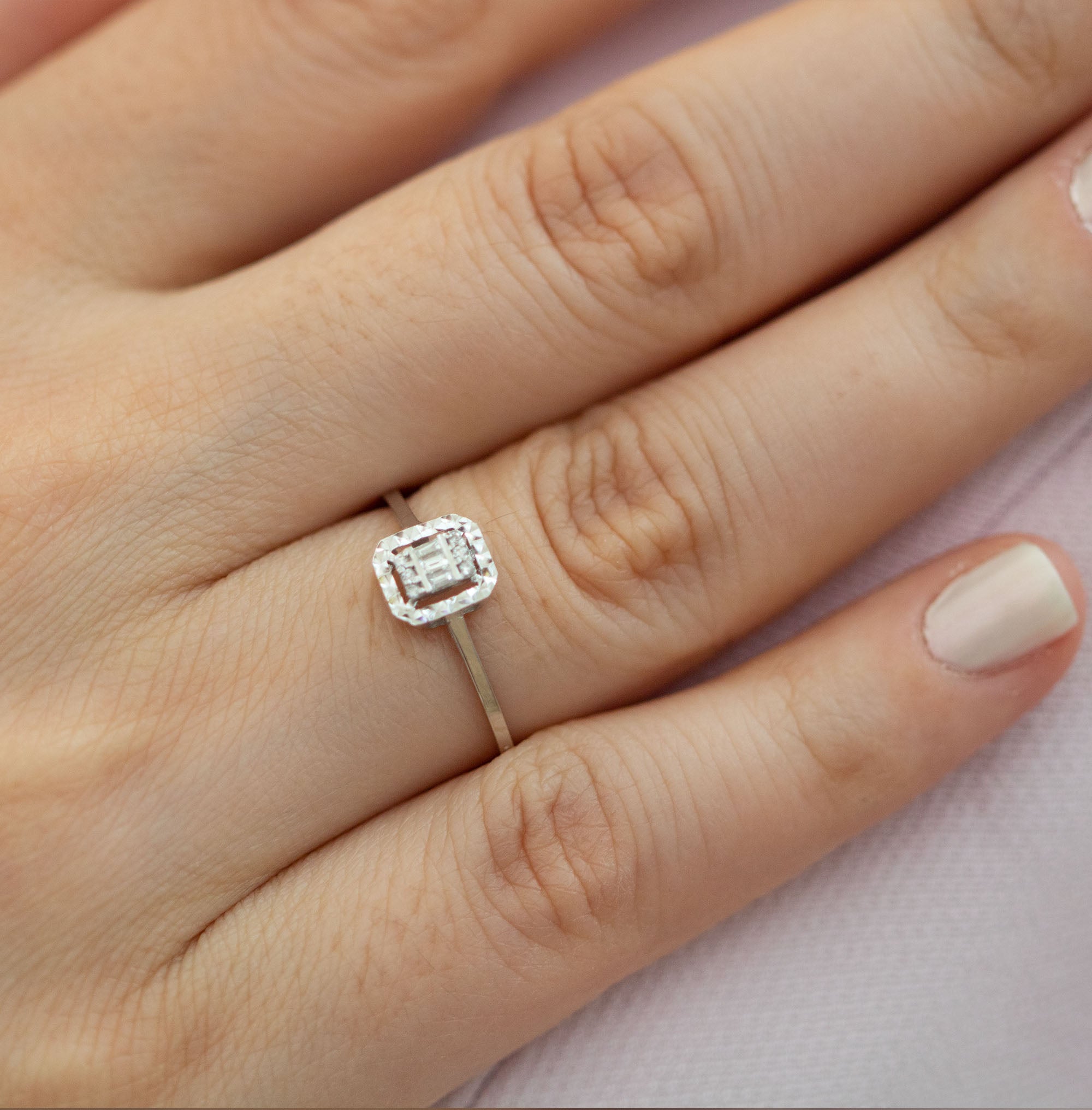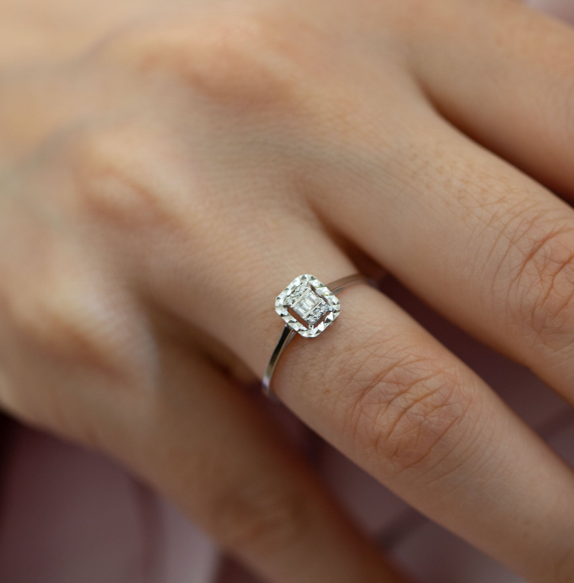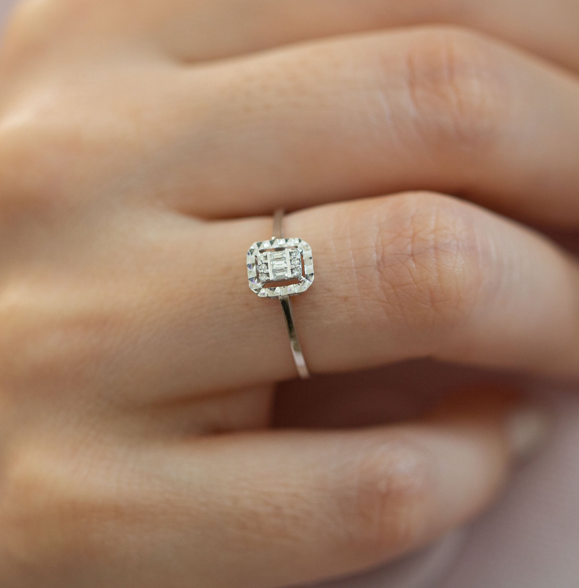 - Diamond Stone Size (Baguette Cut) : 3pcs 3.1MM (F Color – VS Clarity)