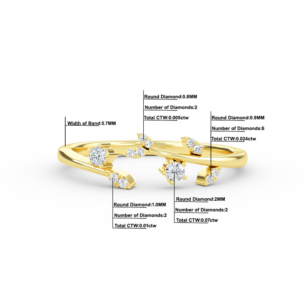 | 14K Gold Diamond Leaf Open Ring Stone(s) Info | |