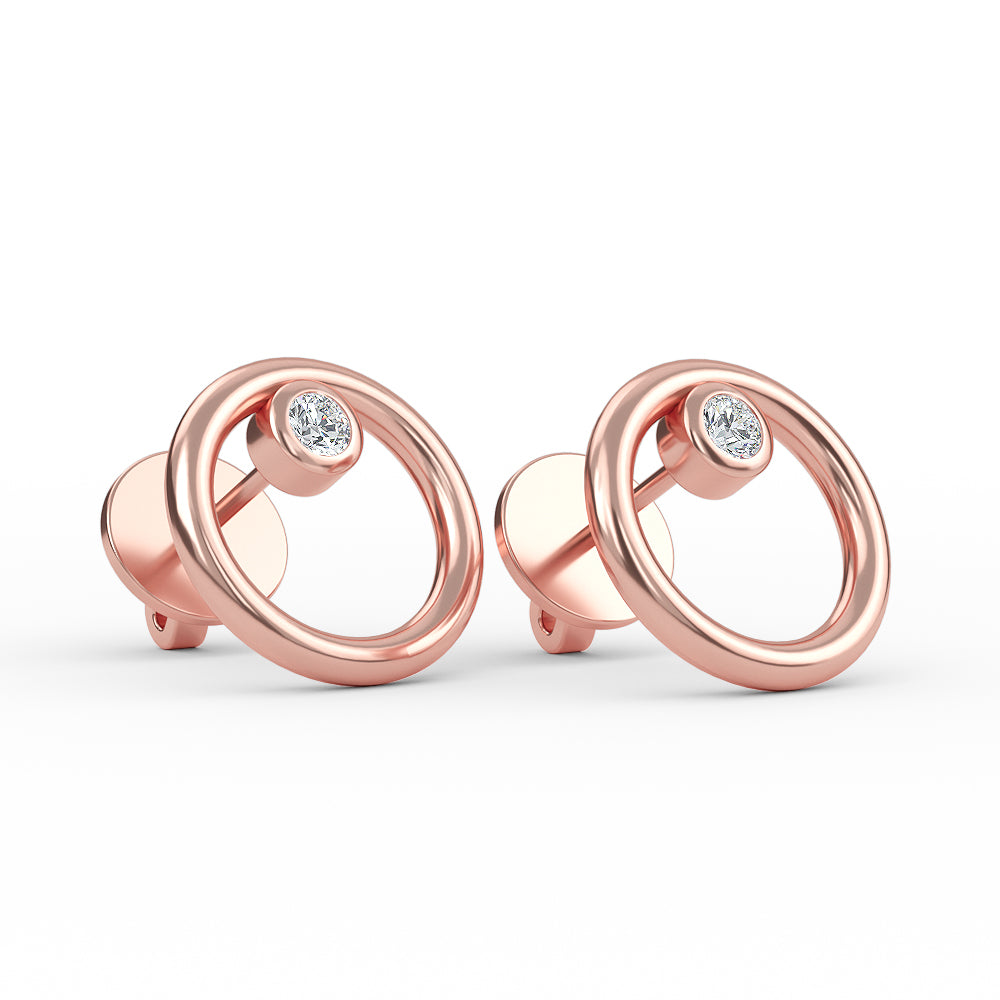 14K Gold Bezel Setting Diamond Open Circle Earrings