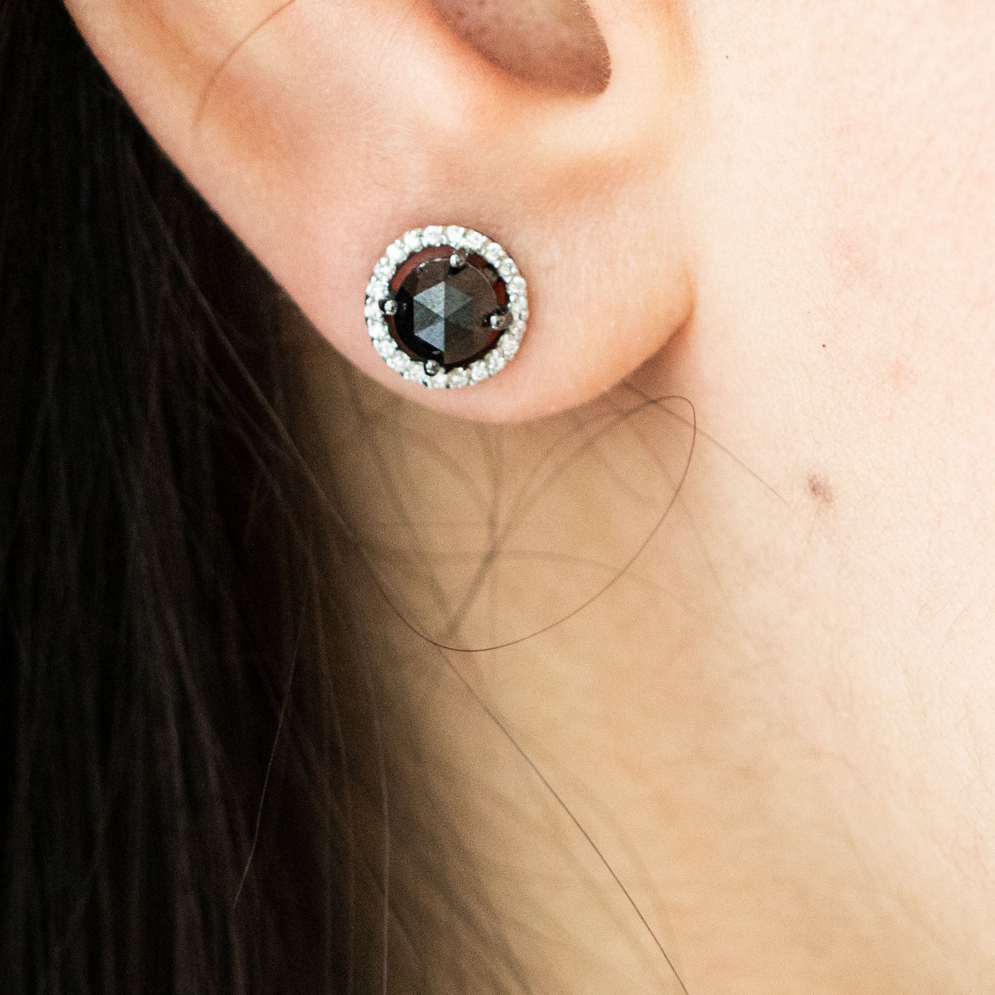 14K Gold Black and White Diamond Halo Earring Stone(s) Info