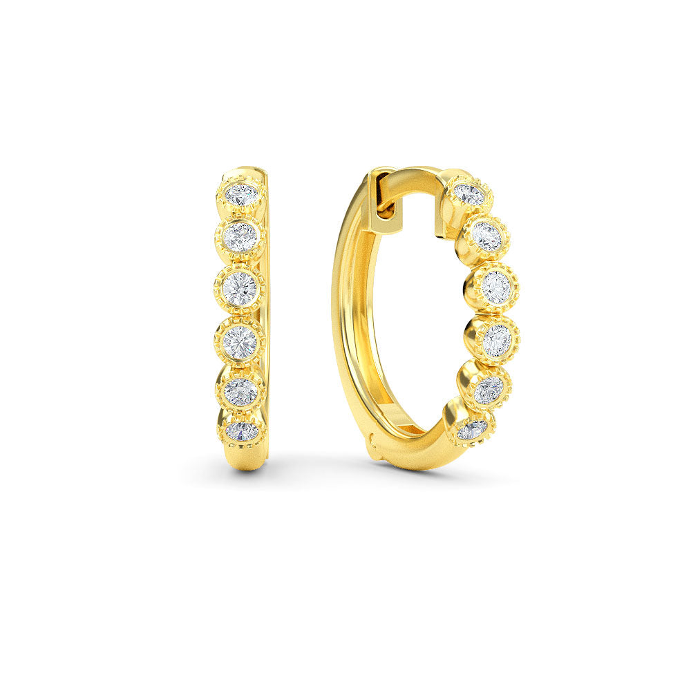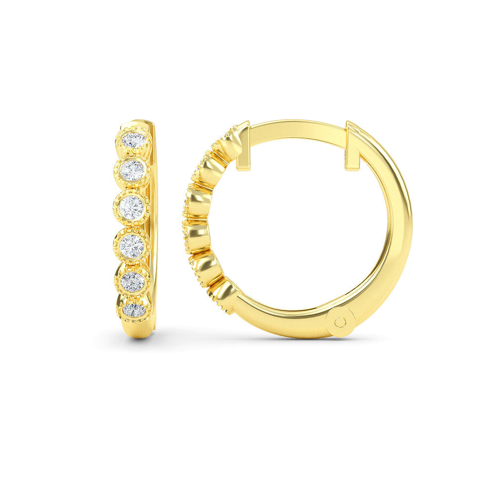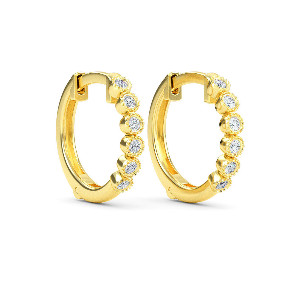 2024 Elyssa Jewelry trend report! Are you ready to be Iconic? Our designers have played around with geometric forms for 2021, taking classic shapes to new places. 14K Gold Diamond Hoop Earrings featuring charming 12 pieces of.10ct white natural diamonds. These earrings are also available in yellow gold, rose gold and white gold.
