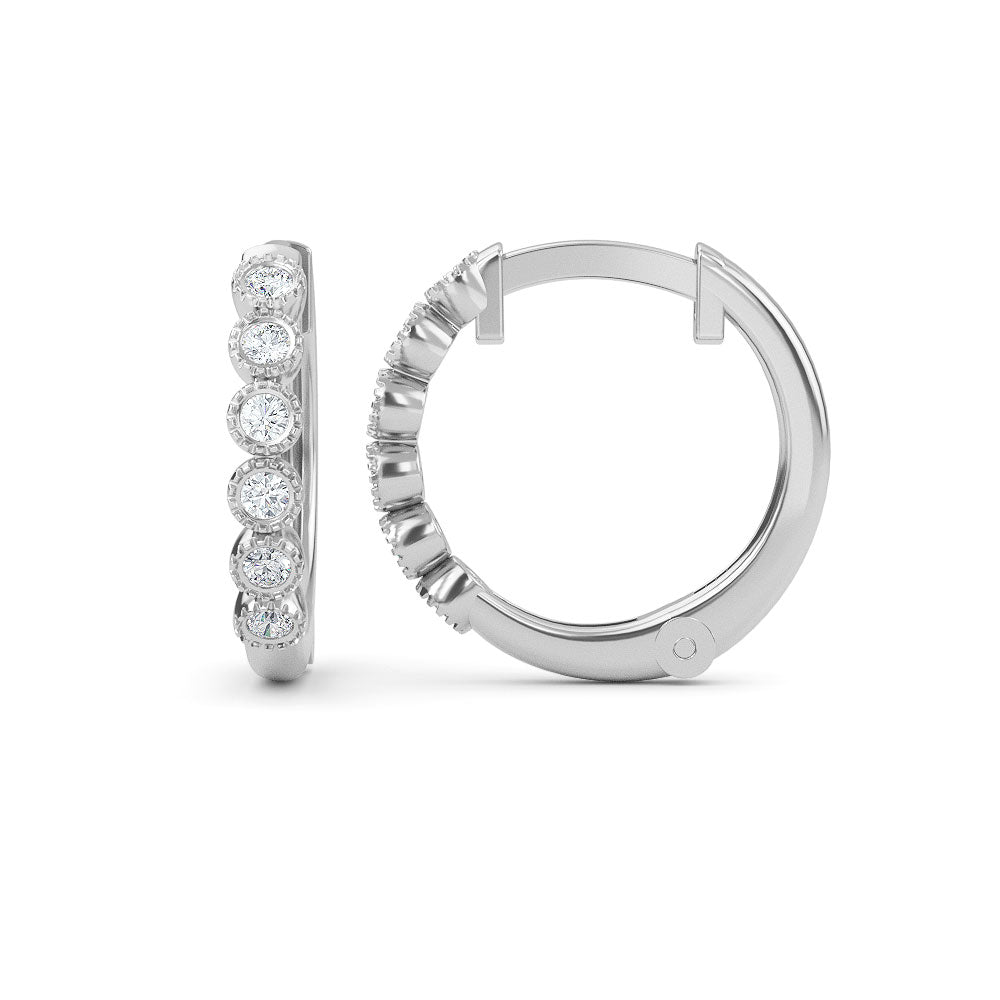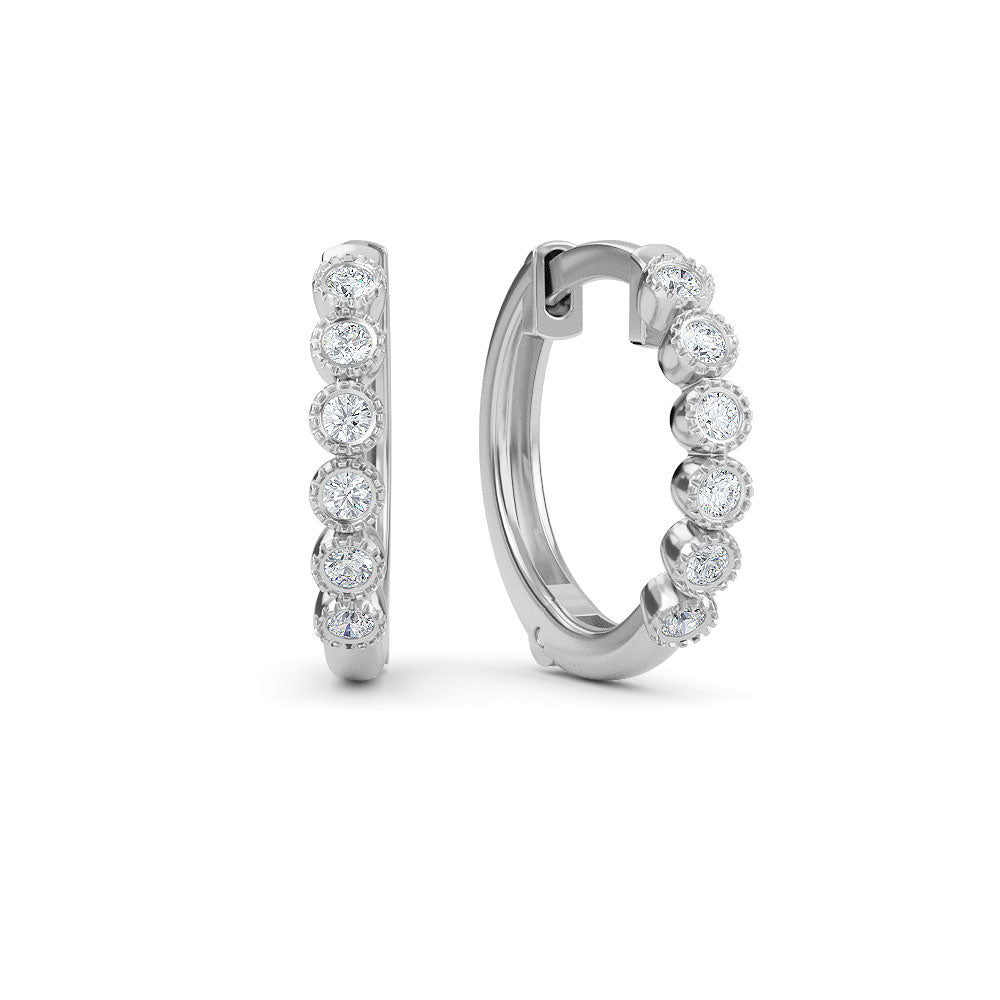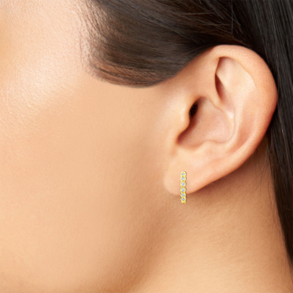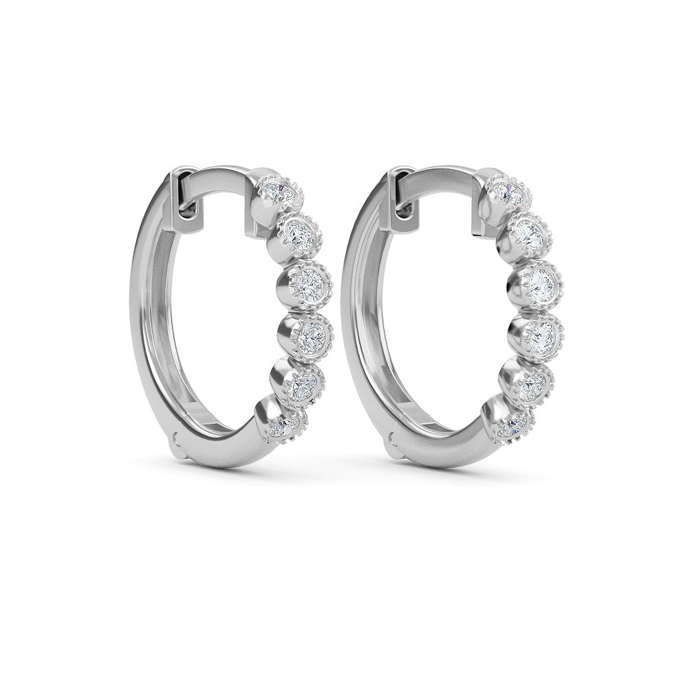 2024 Elyssa Jewelry trend report! Are you ready to be Iconic? Our designers have played around with geometric forms for 2021, taking classic shapes to new places. 14K Gold Diamond Hoop Earrings featuring charming 12 pieces of.10ct white natural diamonds. These earrings are also available in yellow gold, rose gold and white gold.