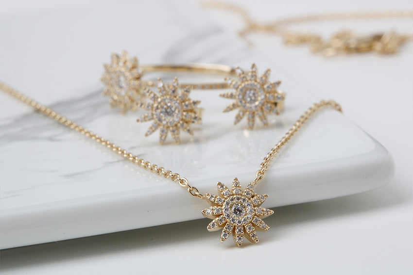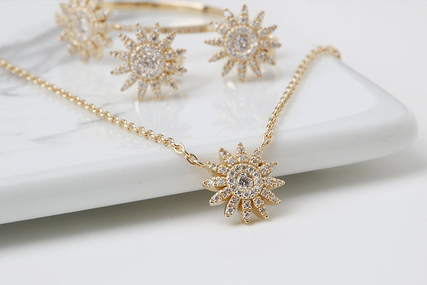 | 14K Gold Floral Diamond Necklace Stone(s) Info | |