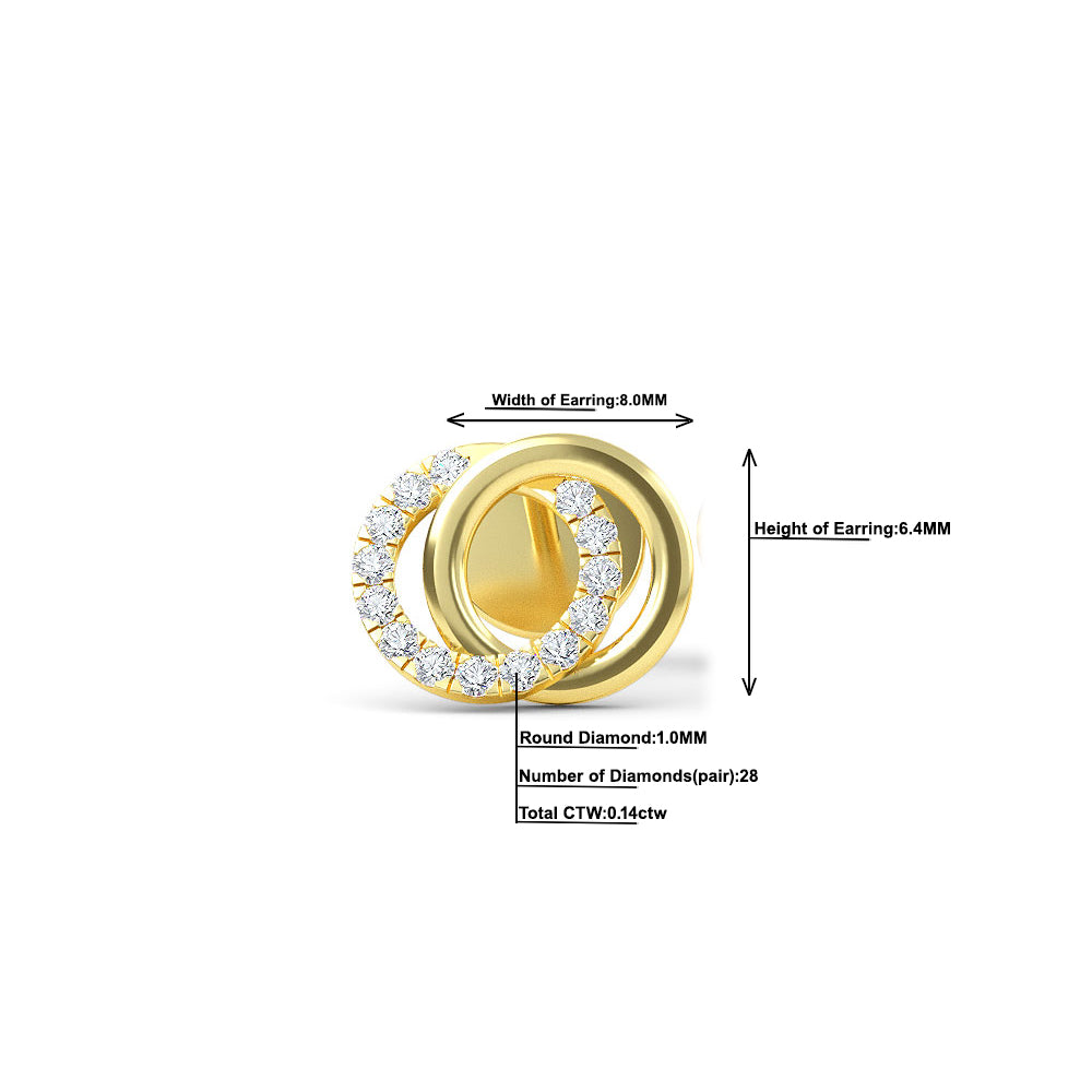 This 14K Gold Double Hoop Diamond Studs Earrings features; white round brilliant cut of .12ct natural diamonds. The 6.2mm width sits perfect on the ears and the classic and simple design makes them perfect for every day.