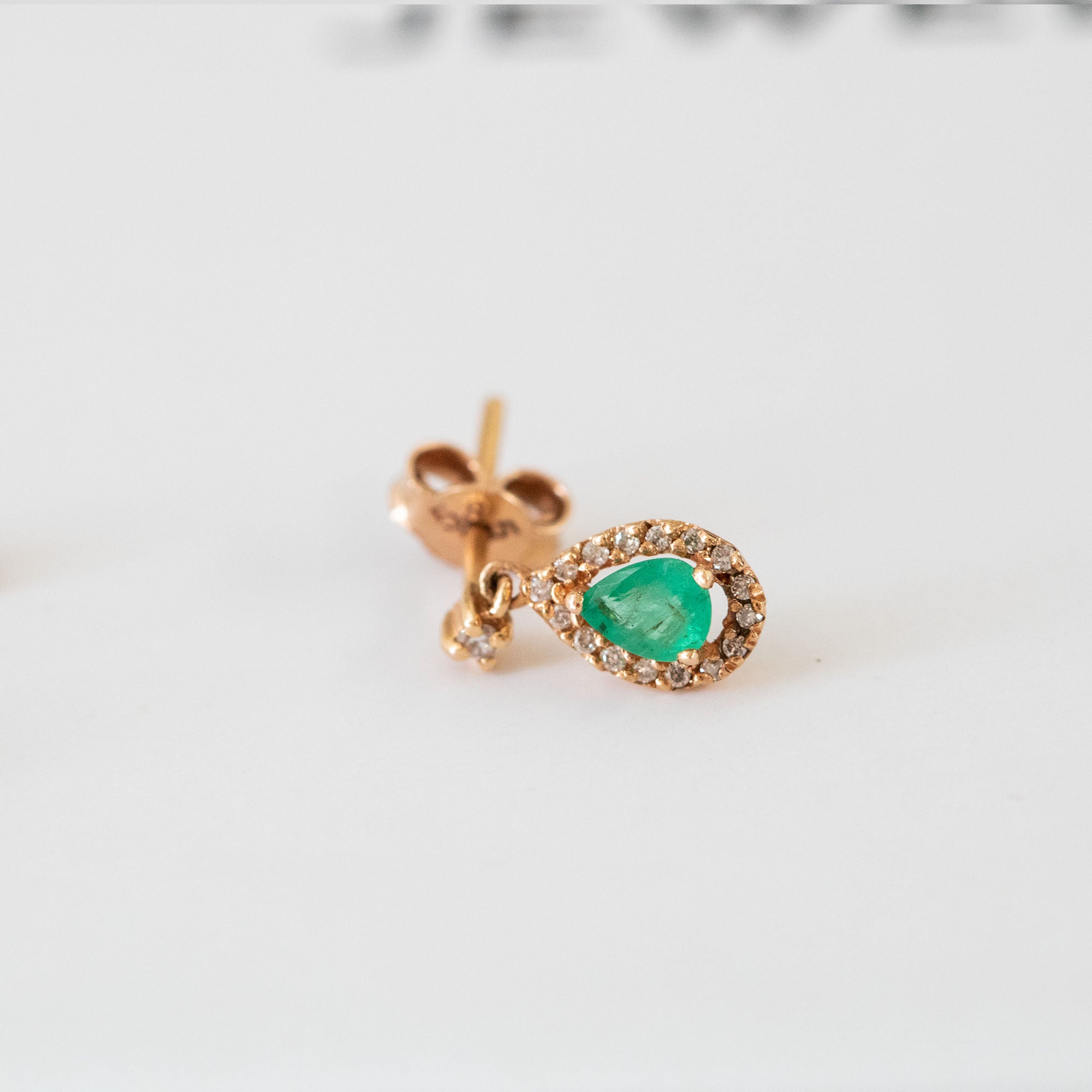 14K Rose Gold Pear Cut and Emerald Diamond Earring