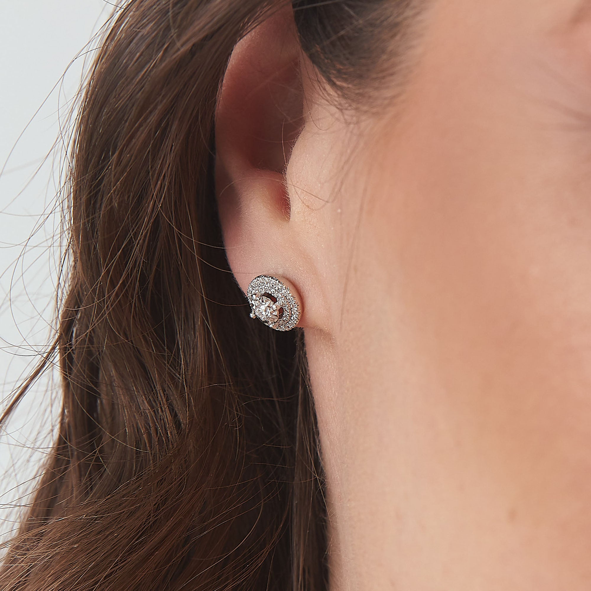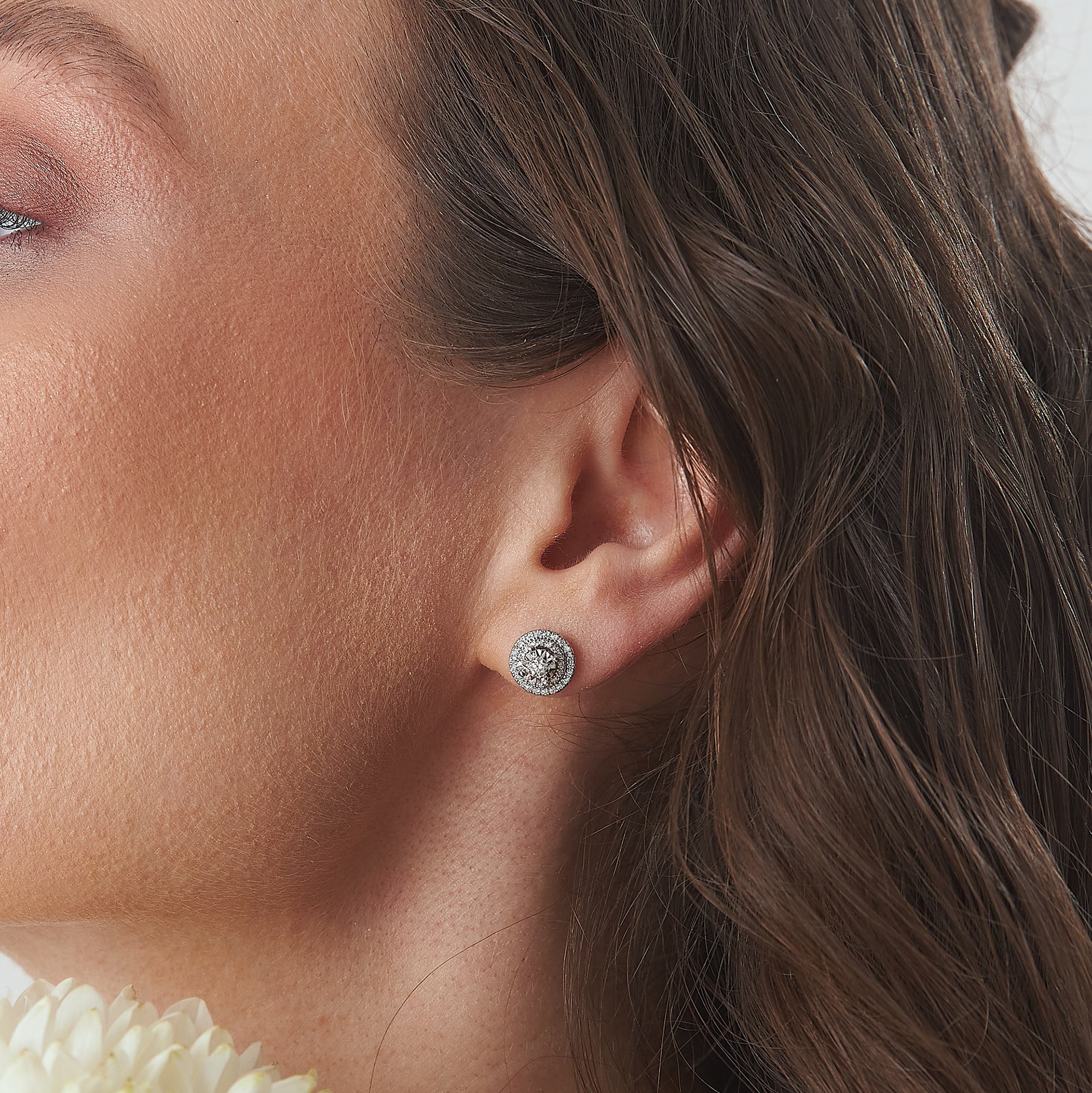 14K White Gold Diamond Halo Earring