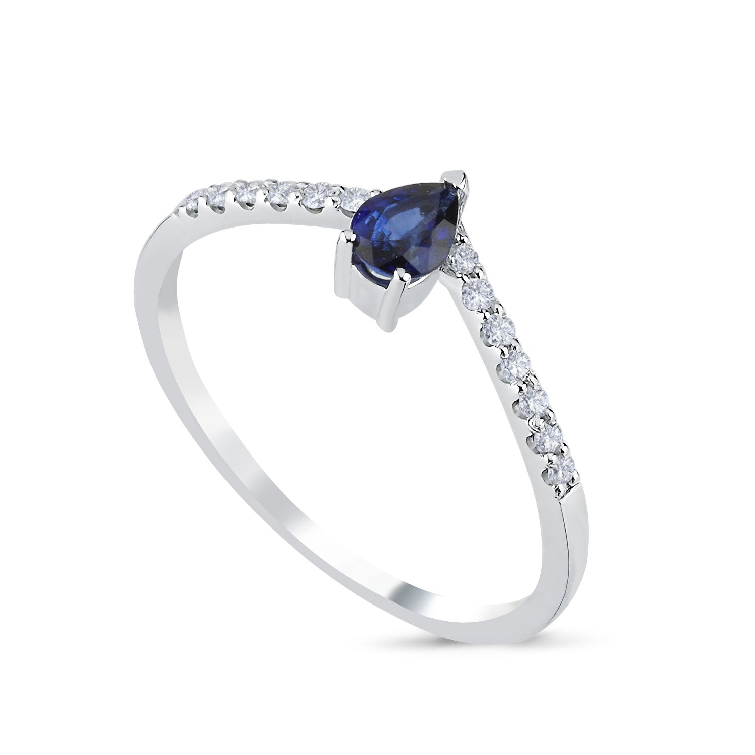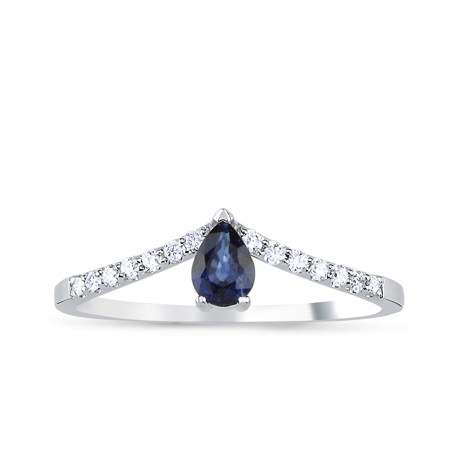 | 14K White Gold Pear Sapphire with Round Diamond Stone(s) Info | |