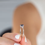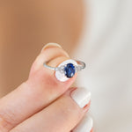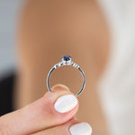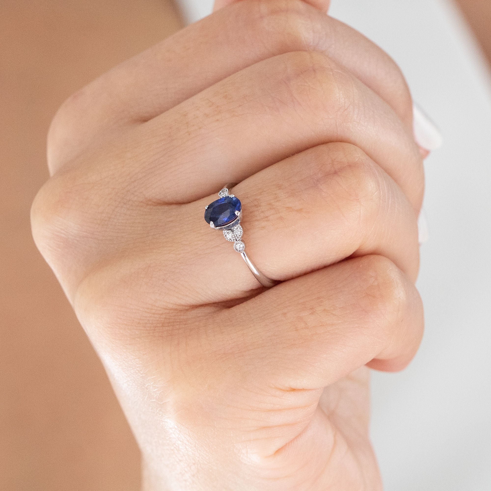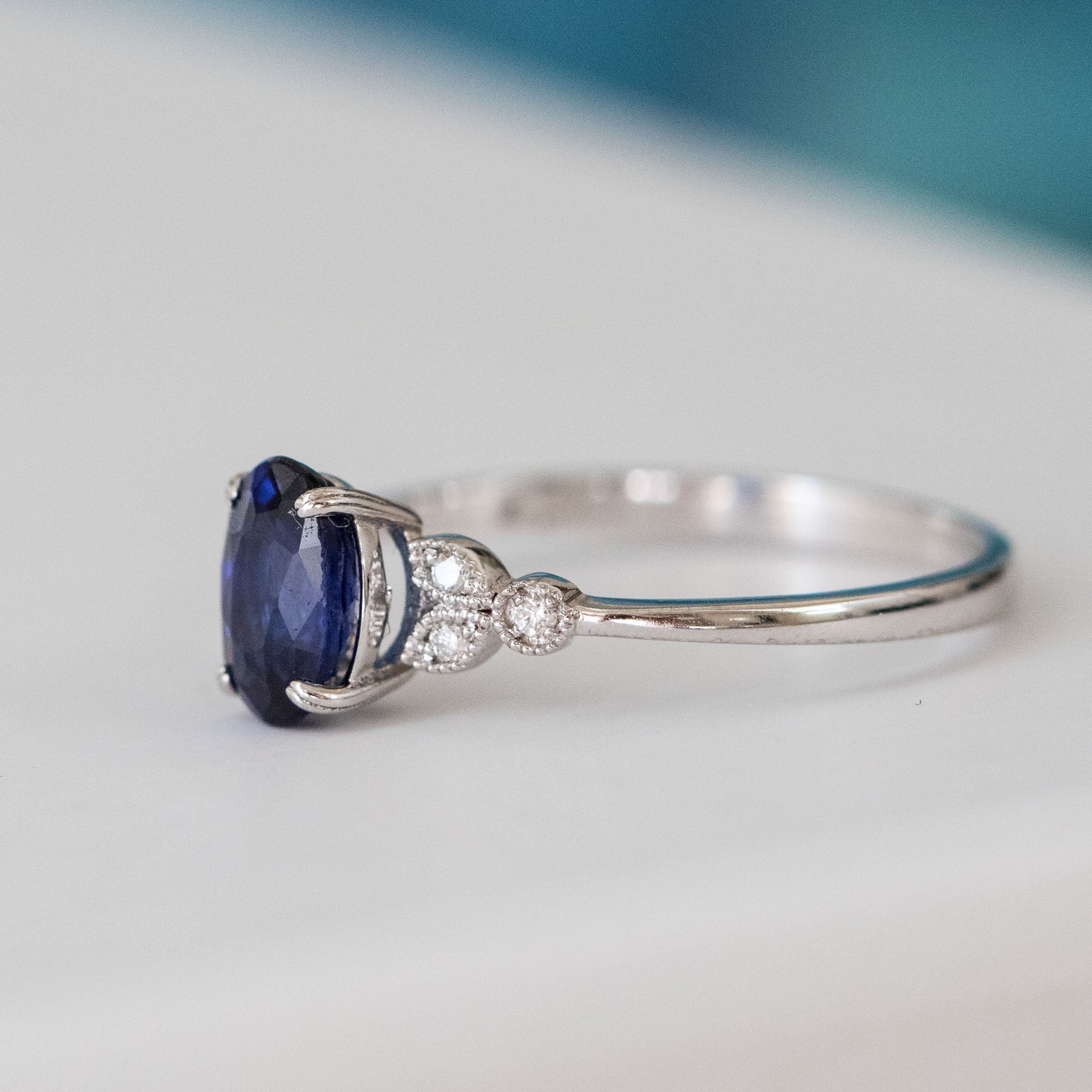 14K White Gold Round and Oval Cut Sapphire Diamond Engagament Ring
