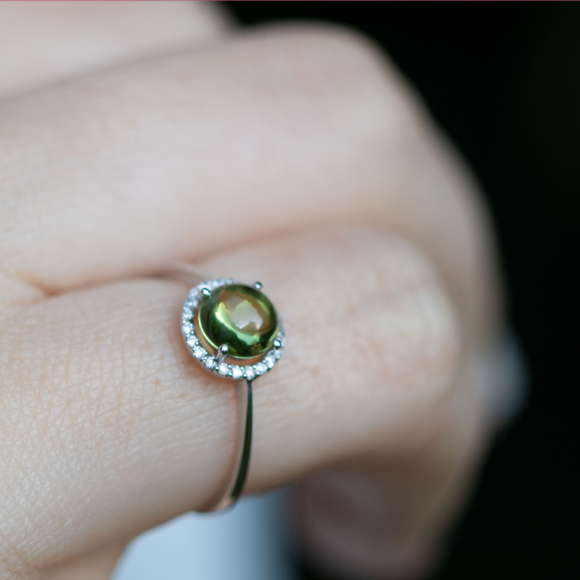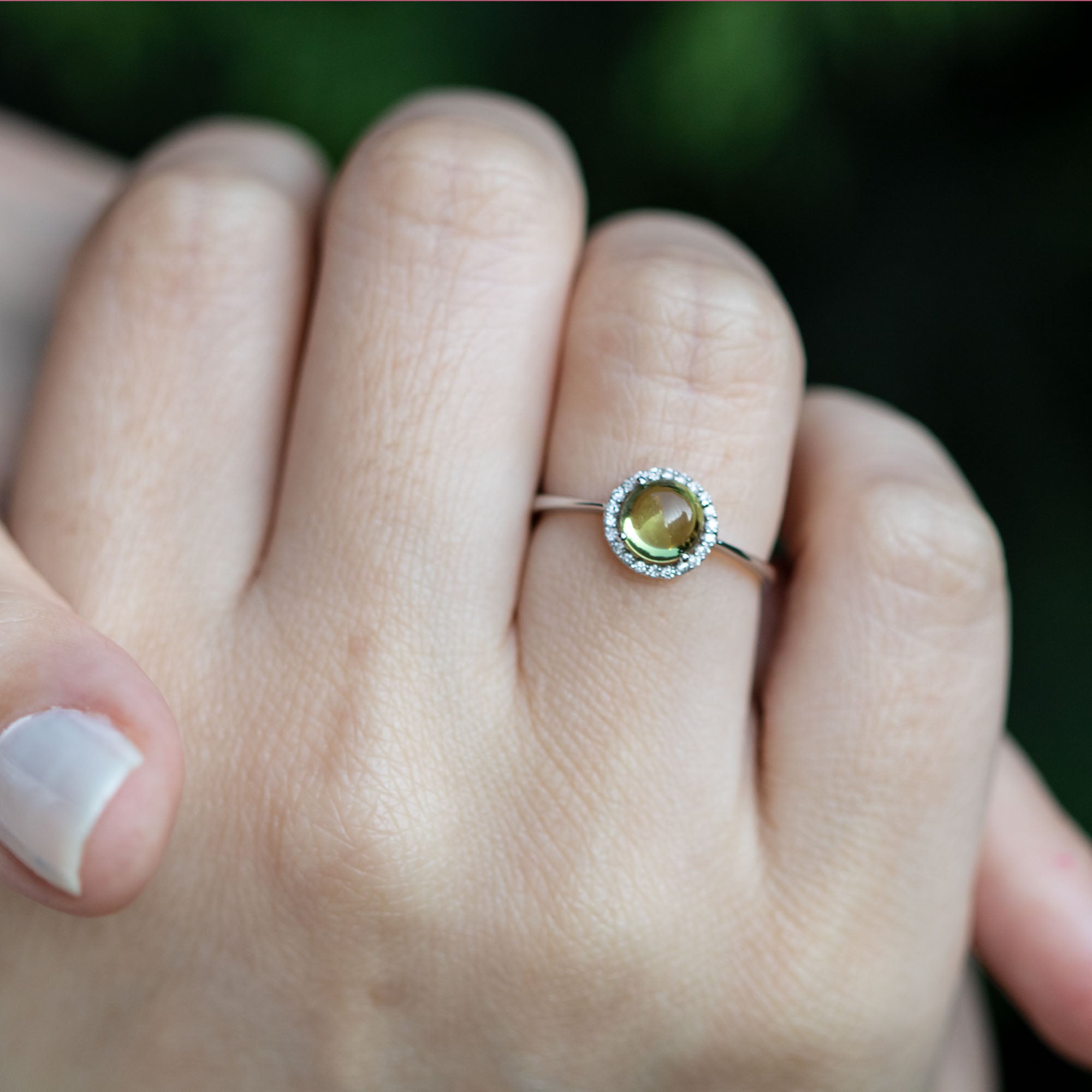 14K White Gold Round Diamond and Peridot Ring Stone(s) Info