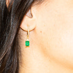 18K Yellow Gold Emerald Cut Diamond Emerald Earring