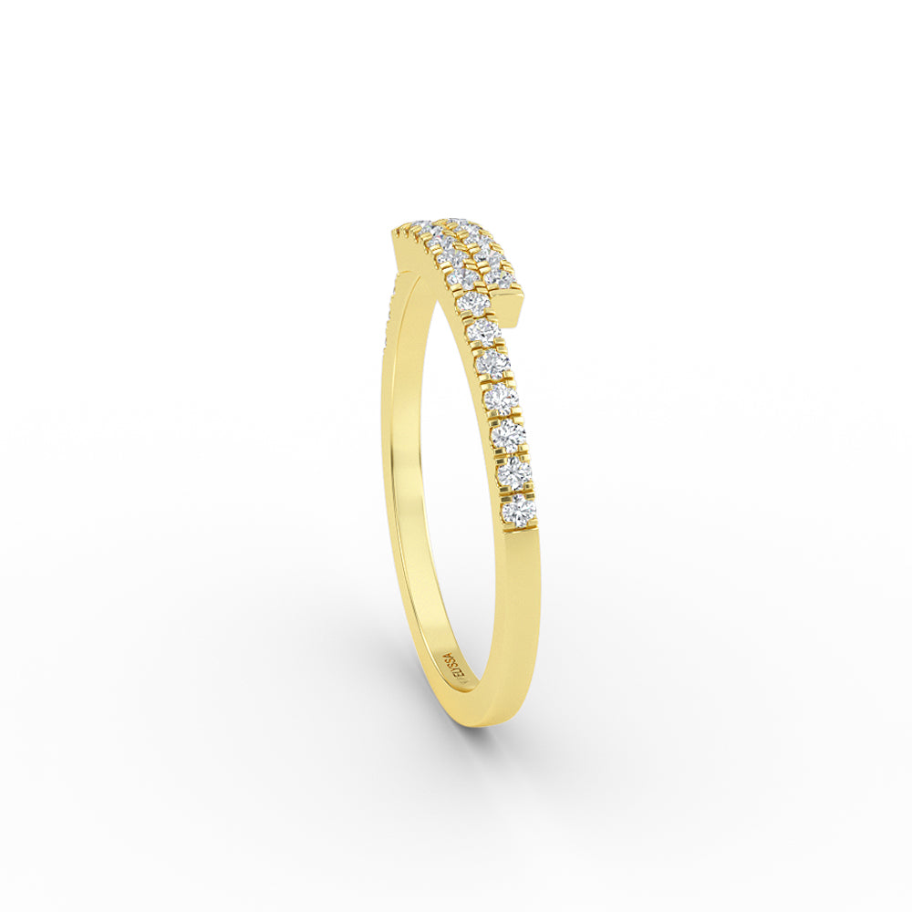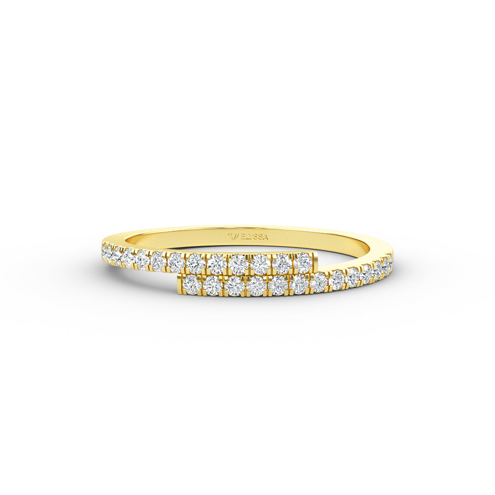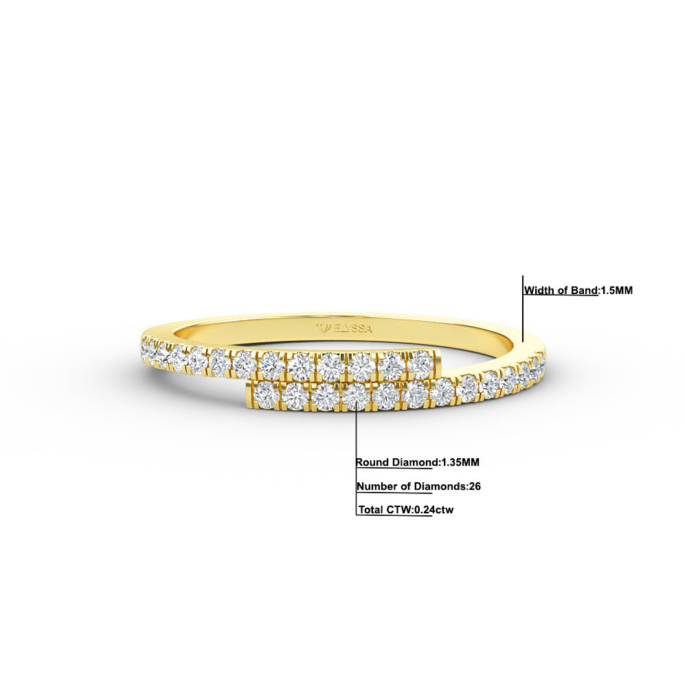 14K Gold Diamond Cross Over Gold Ring